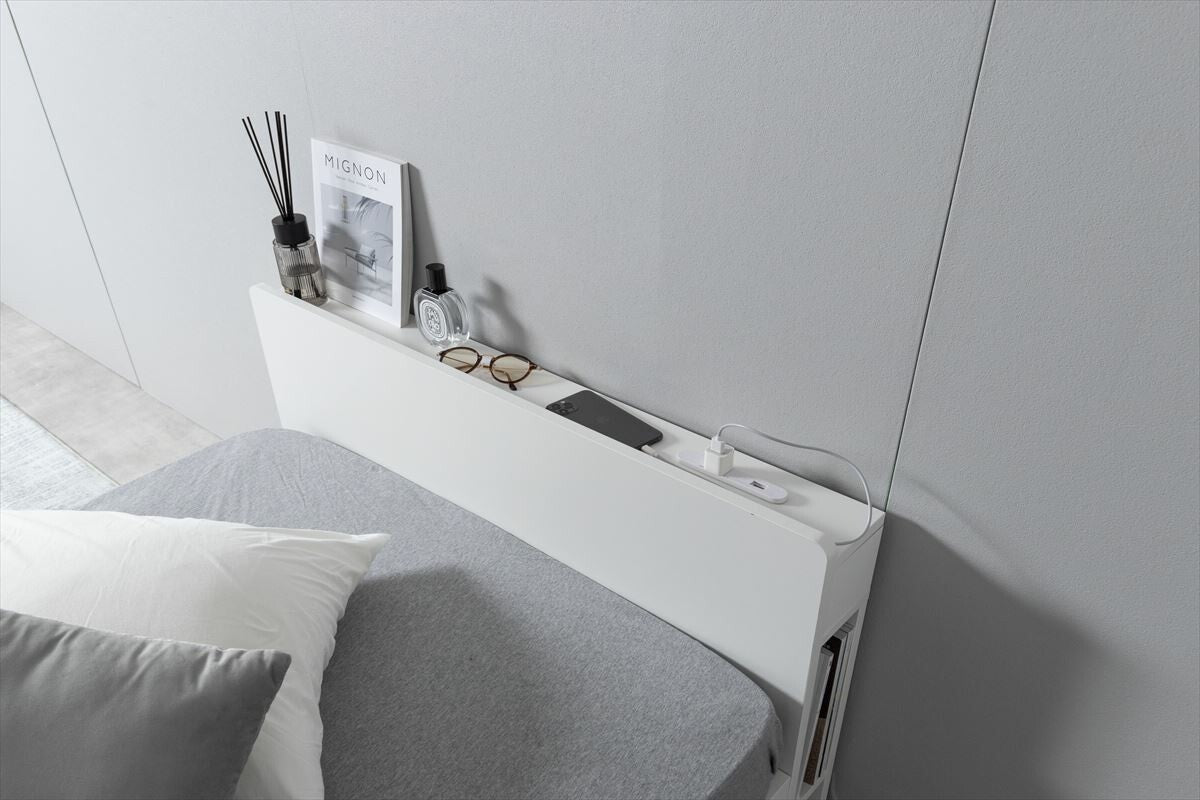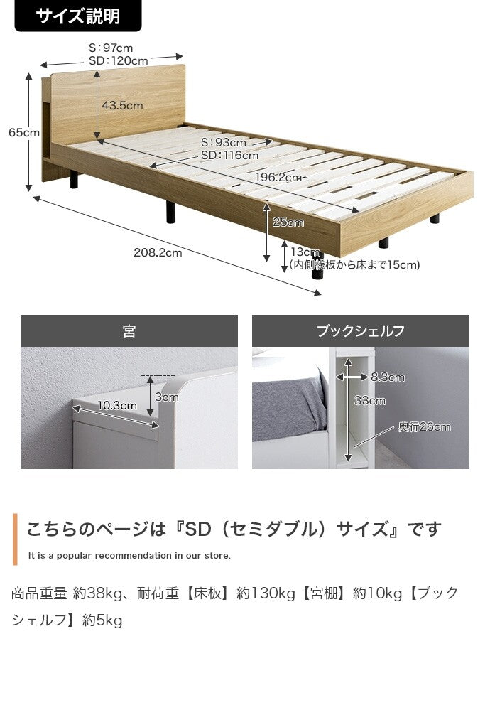 宮付きすのこセミダブルベッドは、機能性とデザイン性を兼ね備えたスタイリッシュなベッドです。セミダブルサイズで、通気性が良いすのこ構造を採用し、マットレスの寿命を延ばします。シンプルでモダンなデザインは、どんなインテリアにもマッチし、ホワイトとナチュラルの2色展開。ヘッドボードにはUSBポートとコンセントがあり、収納スペースも充実。組み立ても簡単で、快適な睡眠環境を提供します。