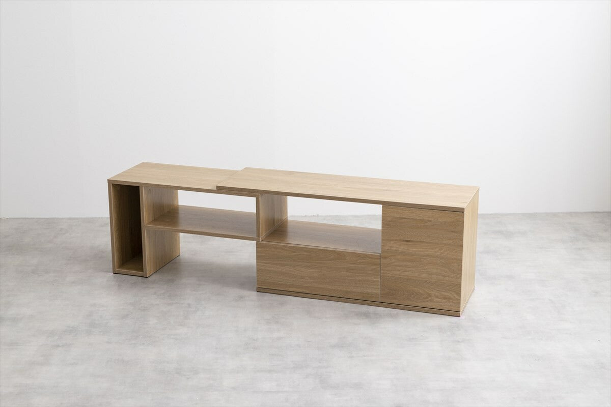 セパレート式伸縮テレビ台は、機能性とデザイン性を兼ね備えたテレビ台です。最大142cmまで伸ばすことができ、部屋のスペースやテレビのサイズに合わせて調整可能です。収納力も抜群で、複数の棚と引き出しがあり、リモコン、DVD、書籍などを整理整頓できます。ナチュラルウッド、ホワイト、ベージュの3色展開で、どんなインテリアにもマッチします。高品質な素材を使用しており、長期間の使用にも耐えられる頑丈な作りです。組み立ても簡単で、工具が不要な設計になっています。
