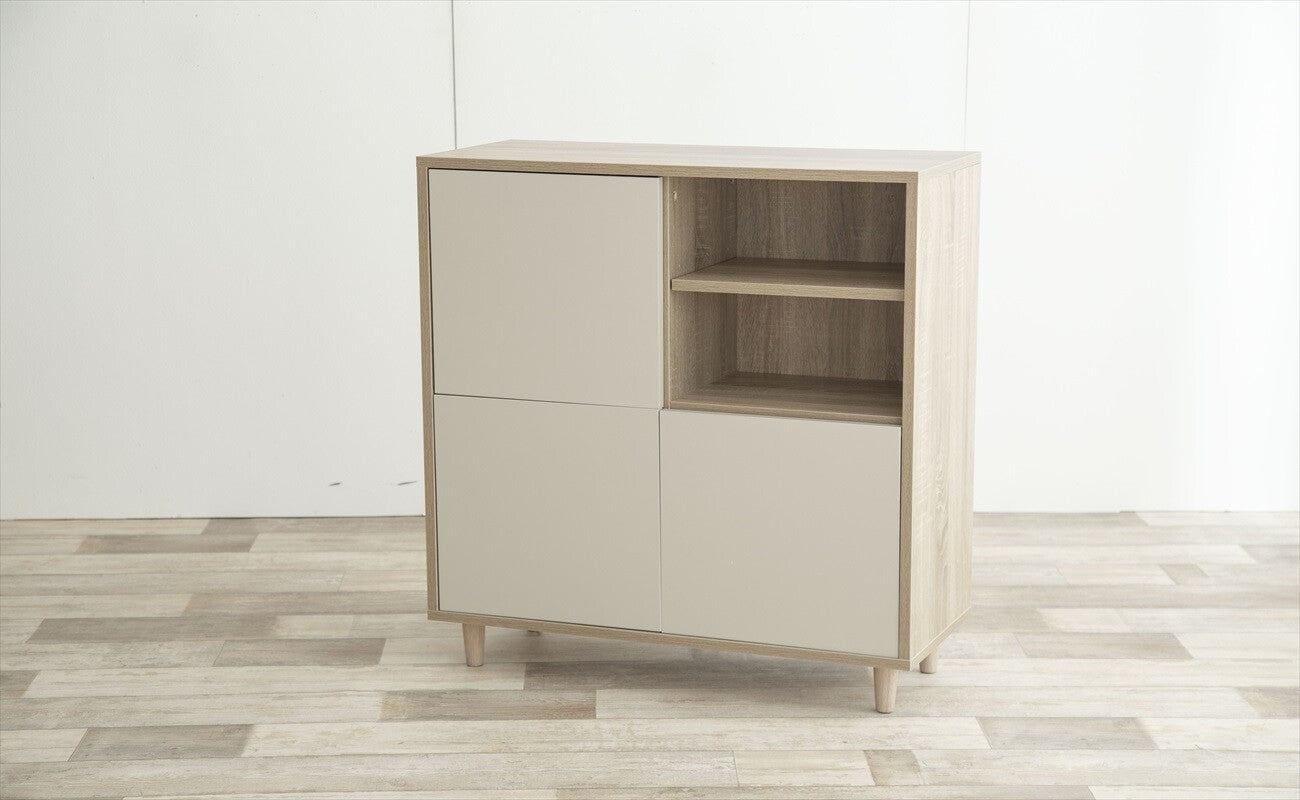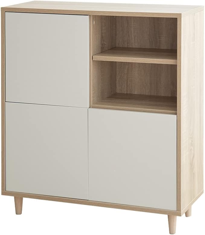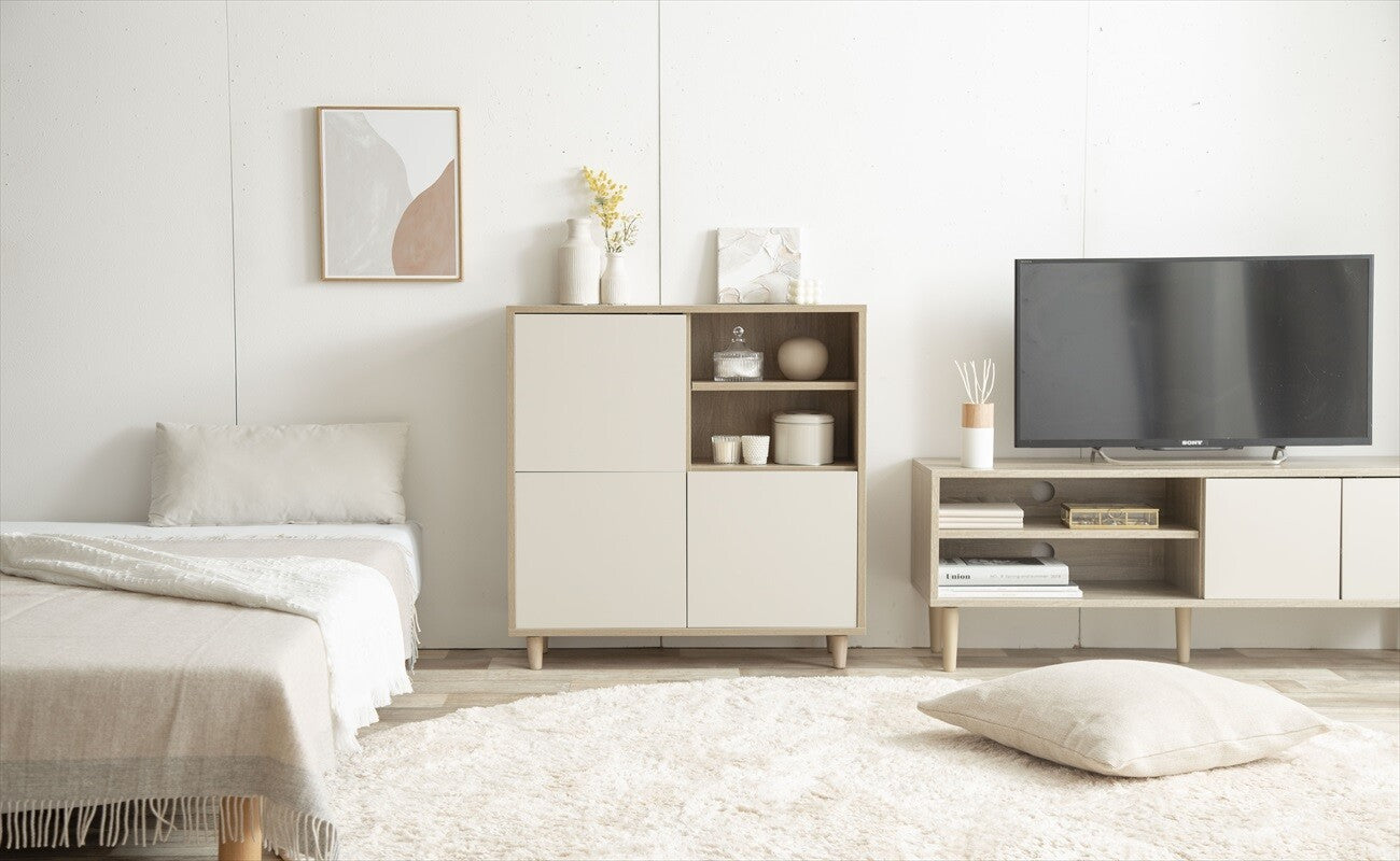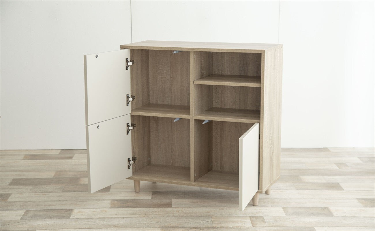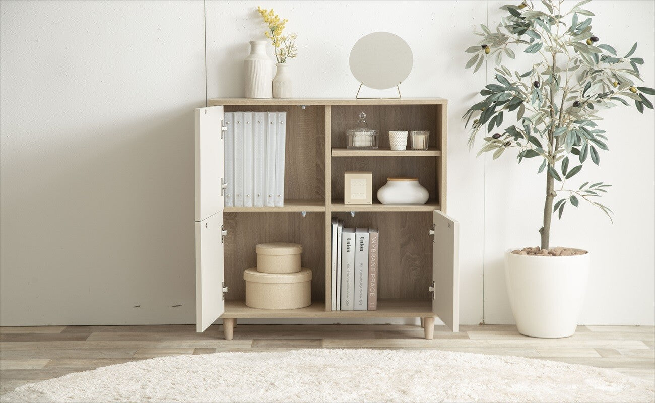 バイカラー木目柄スクエアキャビネットは、シンプルでスタイリッシュなデザインが特徴です。ナチュラルな木目と落ち着いた色合いがどんなインテリアにも調和し、4つの扉付き収納スペースとオープンシェルフで様々なアイテムを整理整頓できます。高品質な素材を使用し、耐久性と美しさを兼ね備え、簡単に組み立てられる設計で、リビングやベッドルーム、オフィスなど様々なシーンで活躍します。