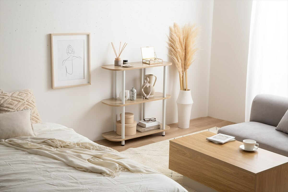 韓国インテリア風木製ボード3段ラックは、シンプルでスタイリッシュなデザインが特徴の多用途な収納アイテムです。高品質な木材を使用し、耐久性と美しい仕上がりを実現。幅80cm、奥行35.2cm、高さ80cmのサイズで、リビングルームや寝室、オフィスなど様々な場所で活用可能。組み立てが簡単で、各棚の耐荷重は15kgと安定感があります。書籍や装飾品、日用品の整理に最適なこのラックは、部屋の雰囲気を一層引き立てます。