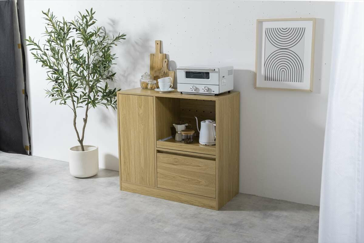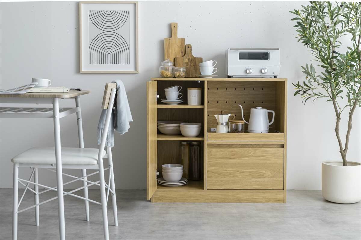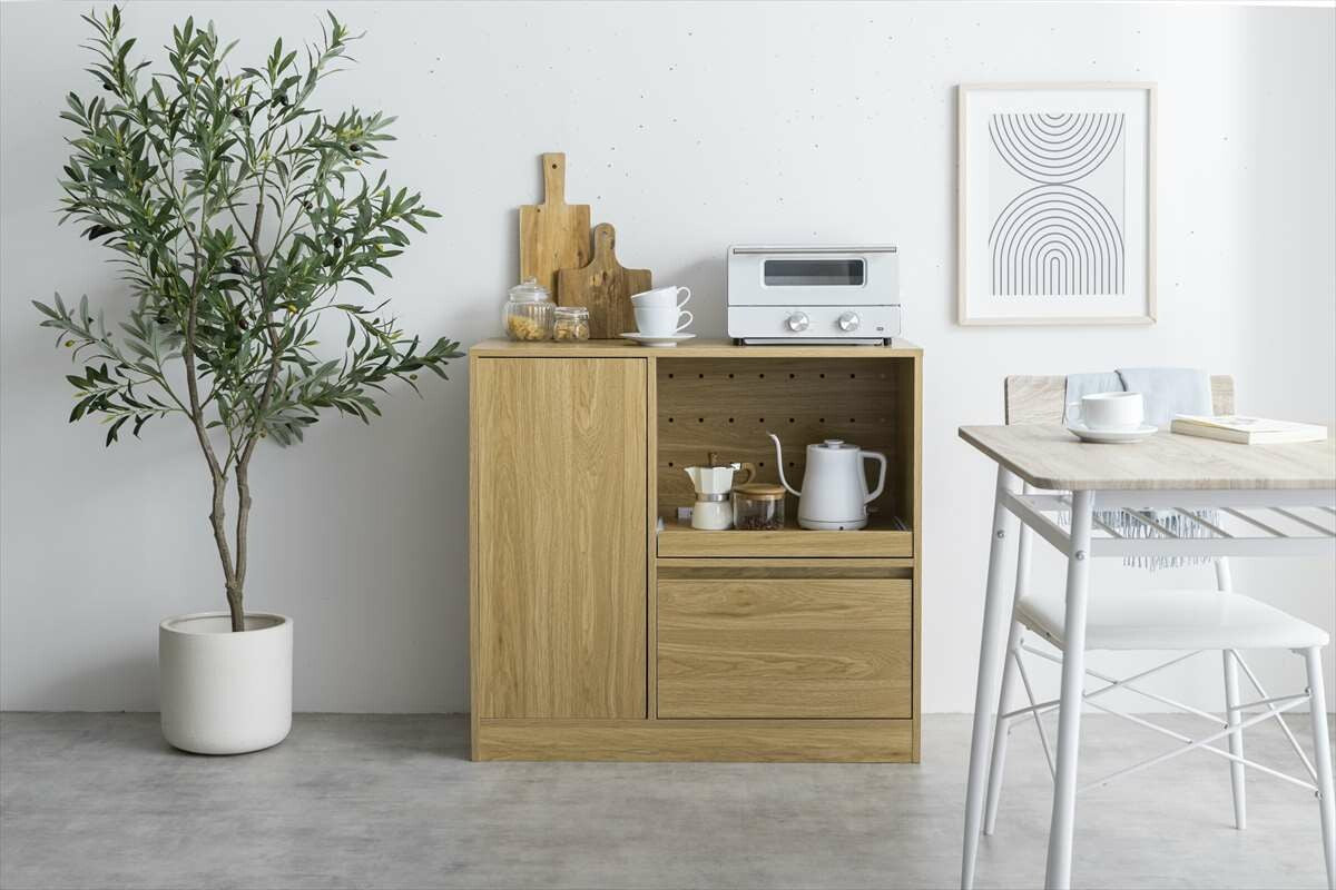 北欧モダン木製レンジ台は、シンプルで洗練されたデザインが特徴で、どんなインテリアにも自然に溶け込みます。高品質な木材を使用し、耐久性に優れたこのレンジ台は、幅88cm、奥行40cm、高さ82.5cmのコンパクトサイズでありながら、効率的な収納スペースを提供します。引き出し収納や開き戸付きの収納棚は、キッチンを整理整頓しやすくし、調理家電や食器、調理器具をすっきりと収納できます。落ち着いたグレーとナチュラルな木目調の2色展開で、お部屋の雰囲気に合わせて選べます。機能性とデザイン性を兼ね備えたこのレンジ台で、キッチンをより快適でスタイリッシュな空間に変えてみませんか?