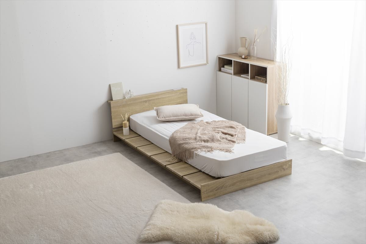 北欧スタイルのセミシングルショートベッドは、快適な睡眠を提供するボンネルマットレス付きです。幅広のすのこデザインにより通気性が良く、マットレスの寿命を延ばします。ヘッドボードには宮棚があり、小物や本を置くのに便利です。サイズは幅100cm、長さ192.1cmで、コンパクトな空間に最適です。高品質な木材を使用し、ナチュラルな風合いを持つデザインが特徴です。床板は約200kg、宮棚は約3kgの耐荷重を持ち、安心して使用できます。北欧風のシンプルで洗練されたデザインが、どんなインテリアにもマッチします。簡単に組み立てられる設計で、説明書に従って短時間で完成します。