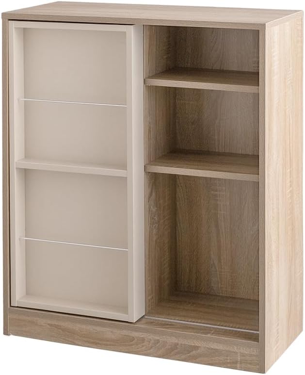 モダンスライド収納付木製本棚ラックは、スタイリッシュで機能的なデザインが特徴です。スライド式収納でスペースを有効活用し、調整可能な棚で書籍や装飾品を自由に配置可能。耐久性のある木製素材で長期間使用でき、モダンなデザインがどんなインテリアにもマッチ。幅71cm、高さ87cm、奥行き34.5cmのコンパクトサイズで、リビングやオフィス、寝室に最適。組み立ても簡単で、工具不要。おしゃれで実用的な収納ソリューションをお探しの方に最適です。