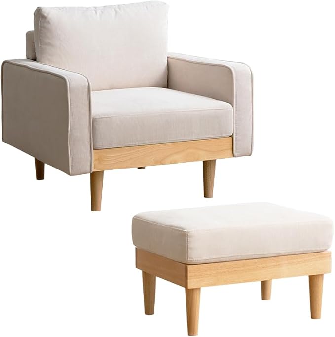 北欧コーデュロイソファ2点セット(1人掛けソファ1脚+オットマン1脚)