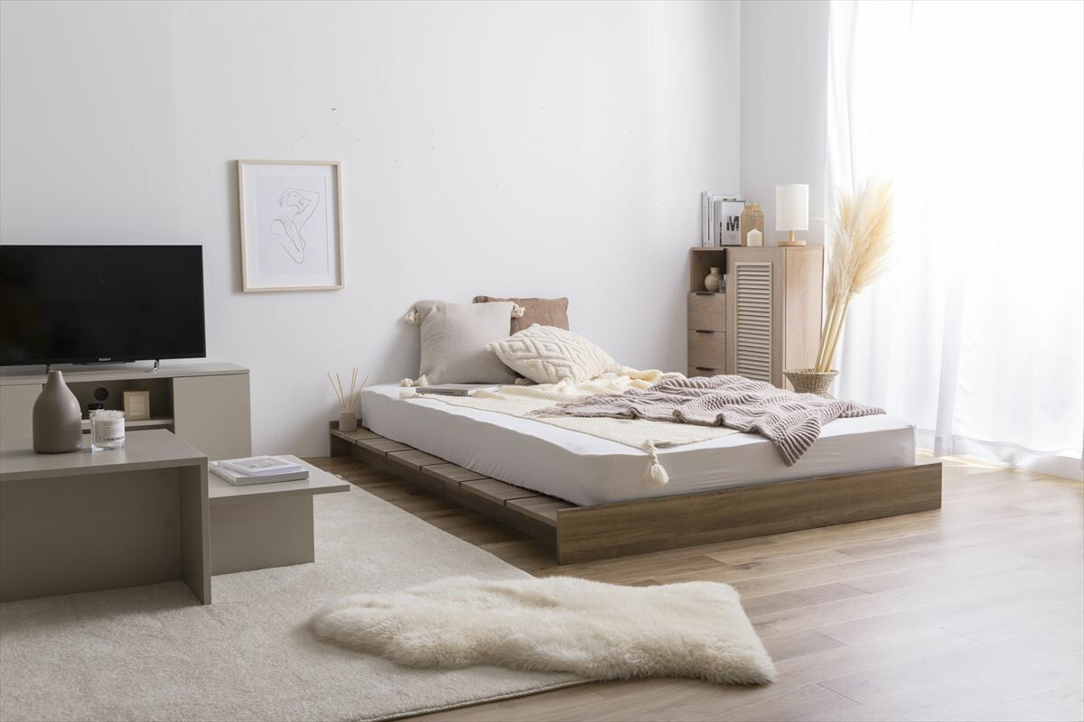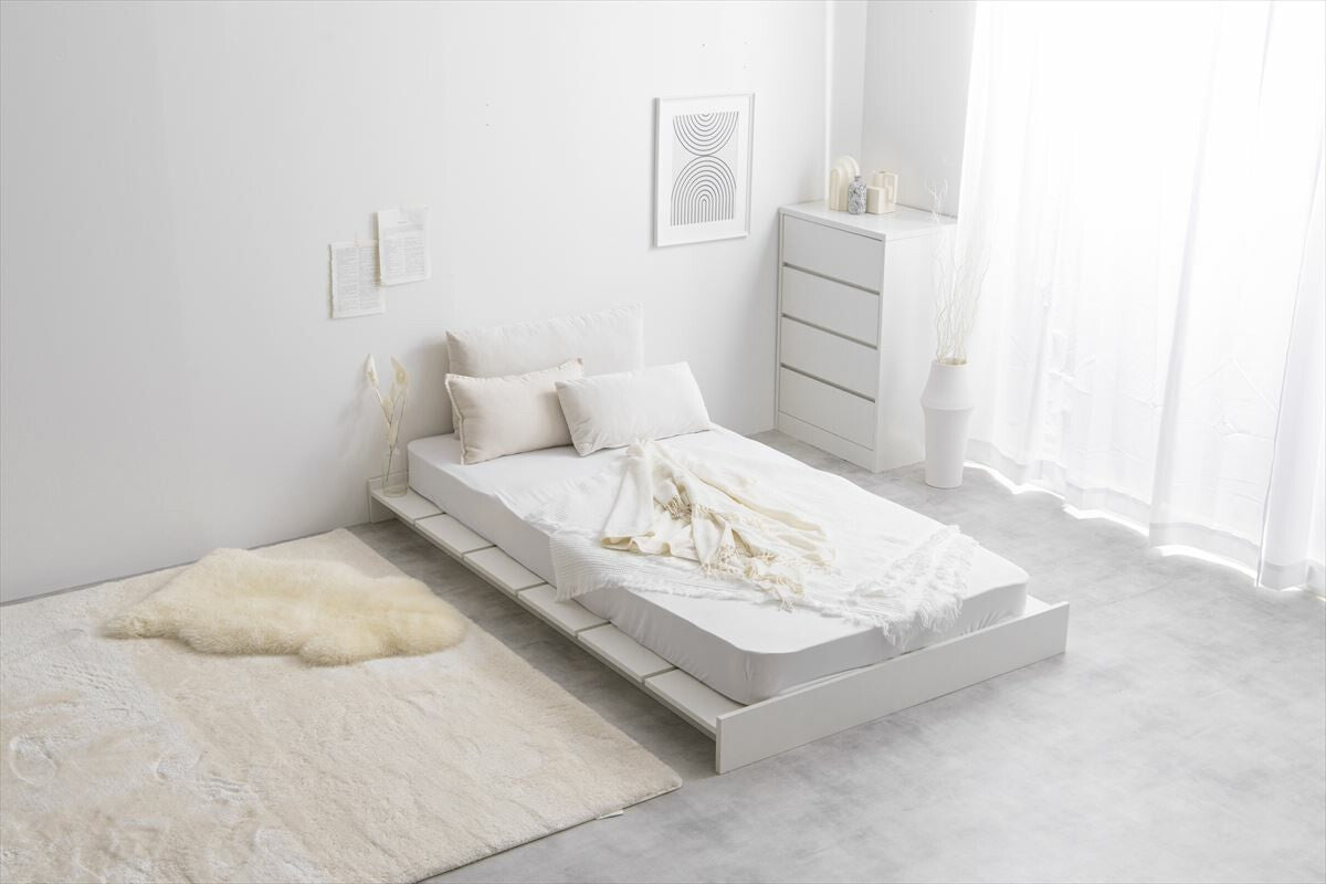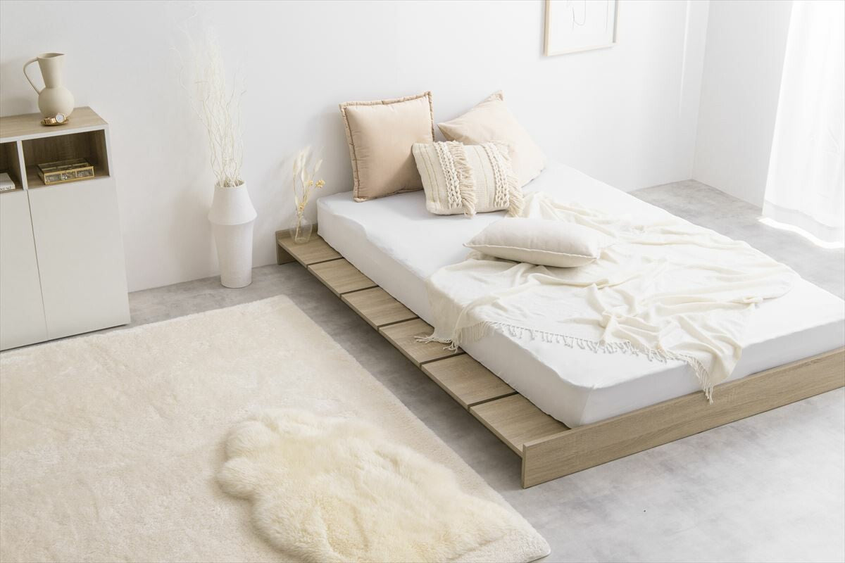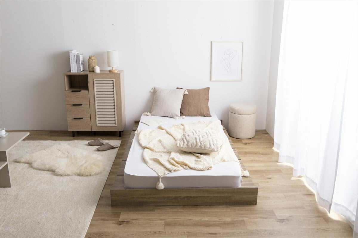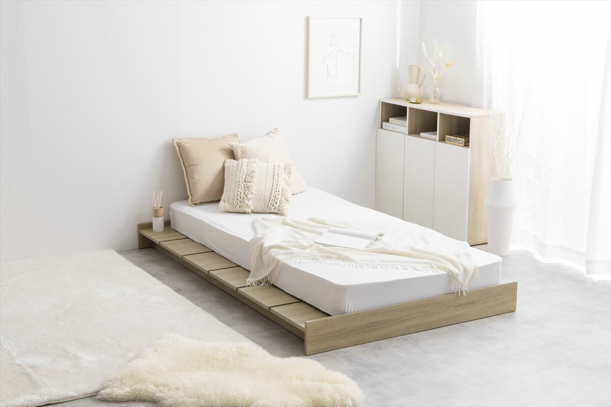 北欧ボンネルマットレス付き幅広すのこシングルローベッド