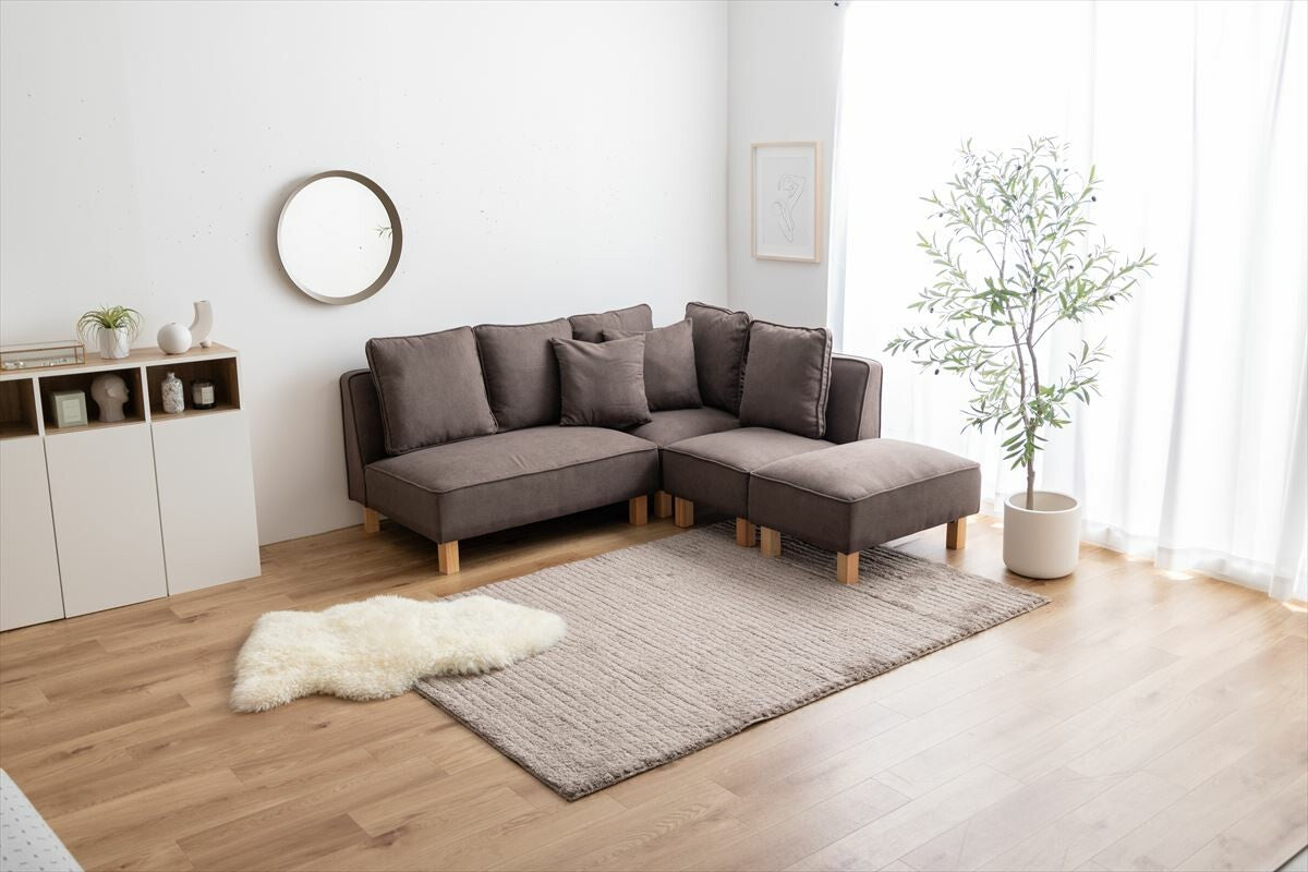 シンプルクッション付き2WAYコーナーソファは、シンプルでありながら機能的なデザインが魅力です。多用途デザインにより、コーナーに配置しても、単体で使用してもおしゃれに決まります。柔らかいクッションが付属し、快適な座り心地を提供します。高品質素材を使用し、耐久性があり長く使用可能です。ミニマルなデザインでどんなインテリアにもマッチし、リビングを一層引き立てます。アイボリー、ベージュ、ダークブラウンのカラーバリエーションがあります。