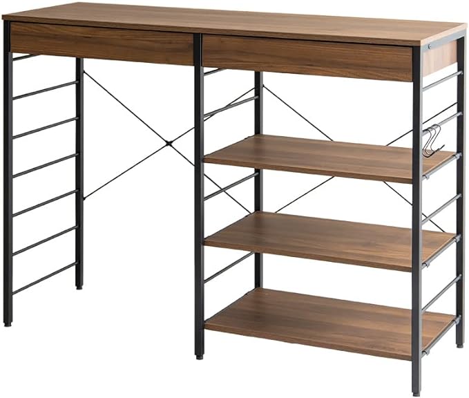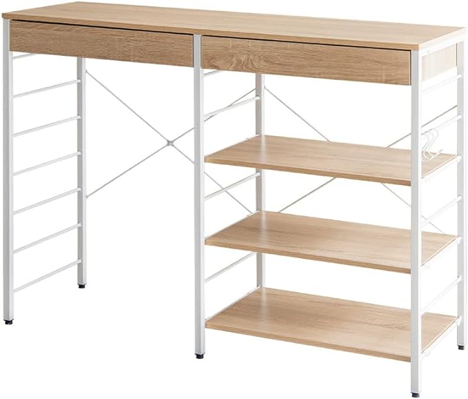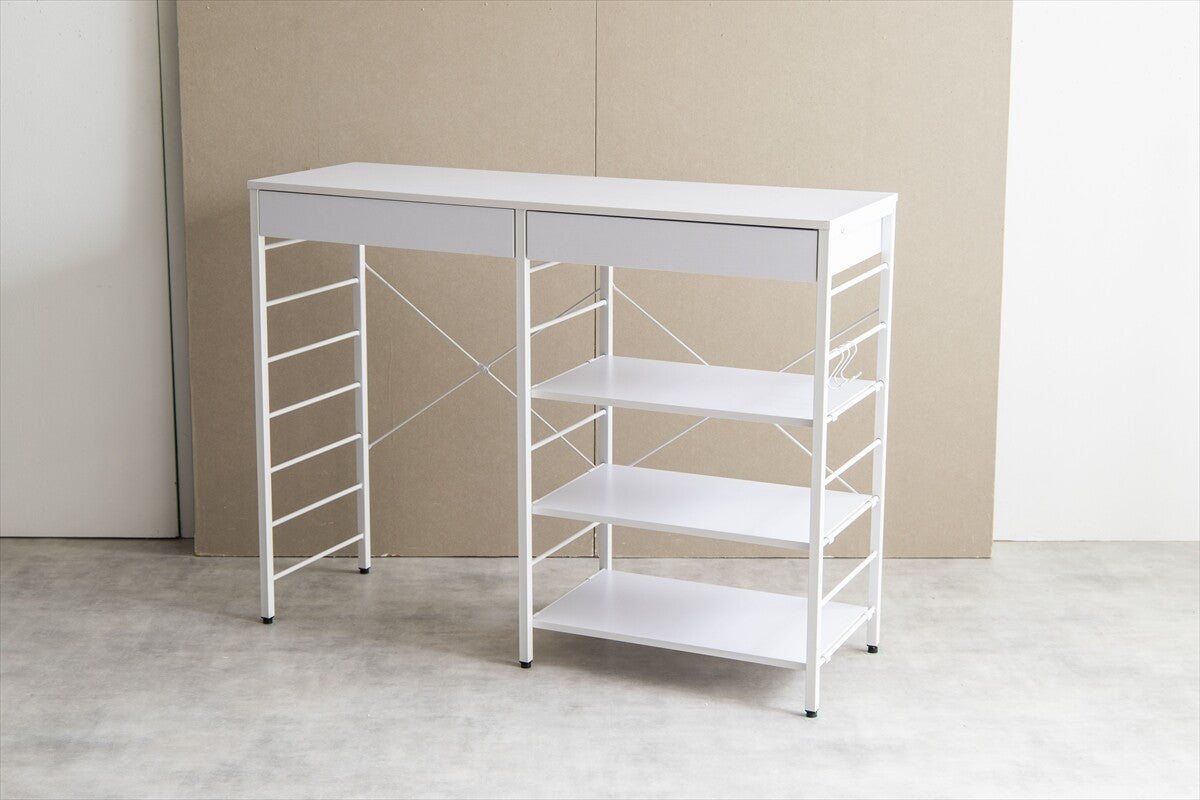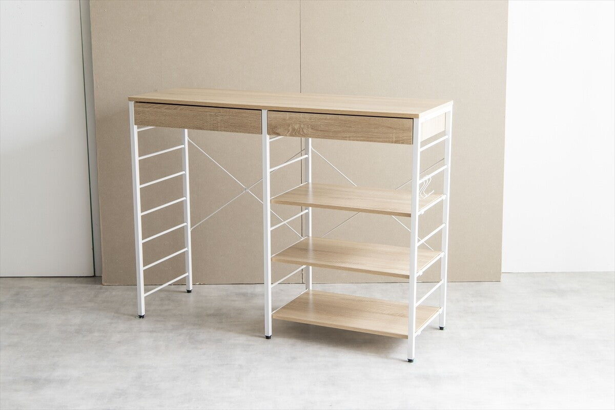 シンプルモダンな木製天板とスチールフレームを組み合わせた幅120cmのラックは、ゴミ箱の上に設置可能な便利な収納アイテムです。キッチンやリビングのスペースを有効活用し、可動棚と引き出しで多様な収納ニーズに対応。組み立て簡単でキャスター付き、移動もスムーズ。多用途でデザイン性と収納力を兼ね備え、生活空間をより快適にします。