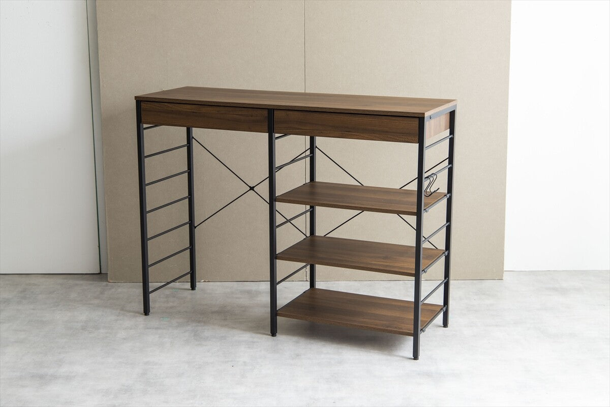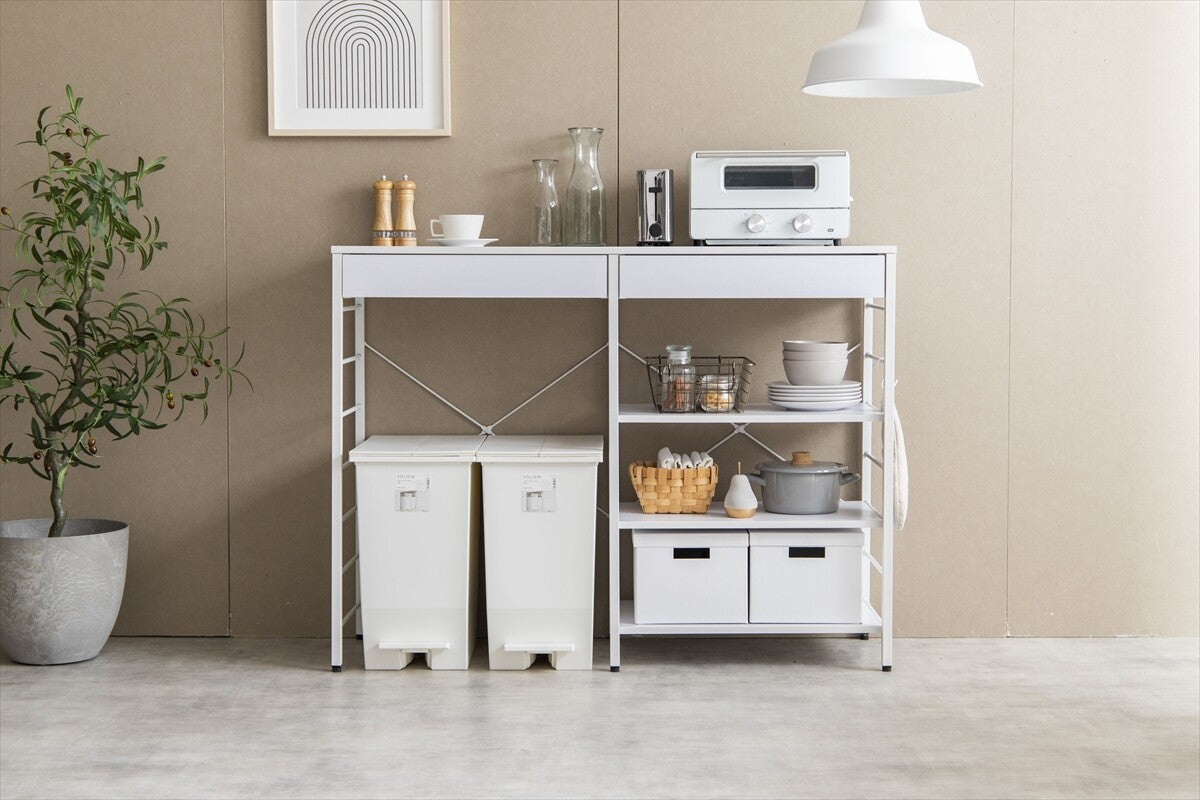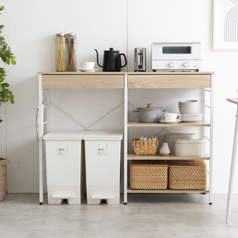 シンプルモダン木製天板スチールフレーム幅120cmゴミ箱上ラック