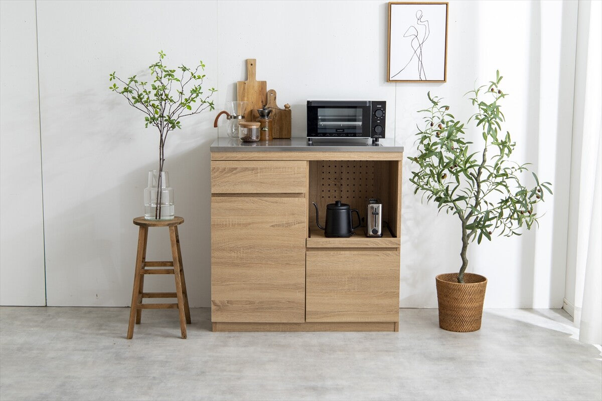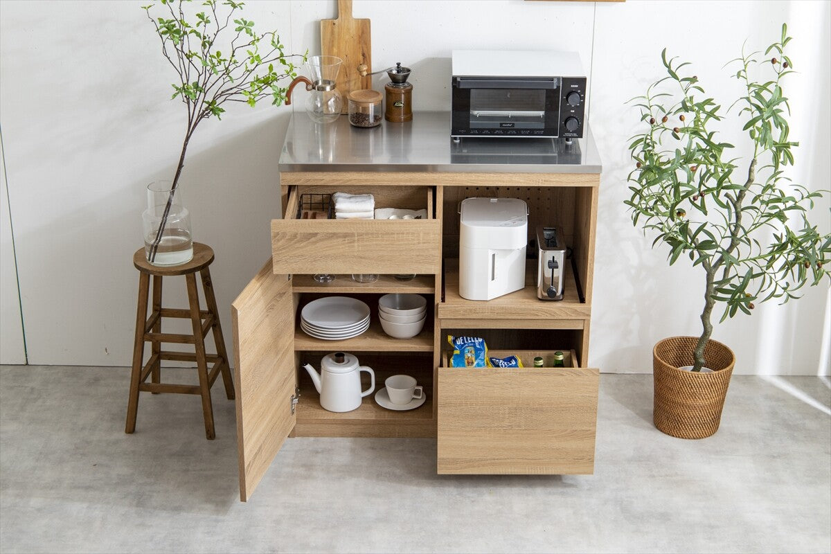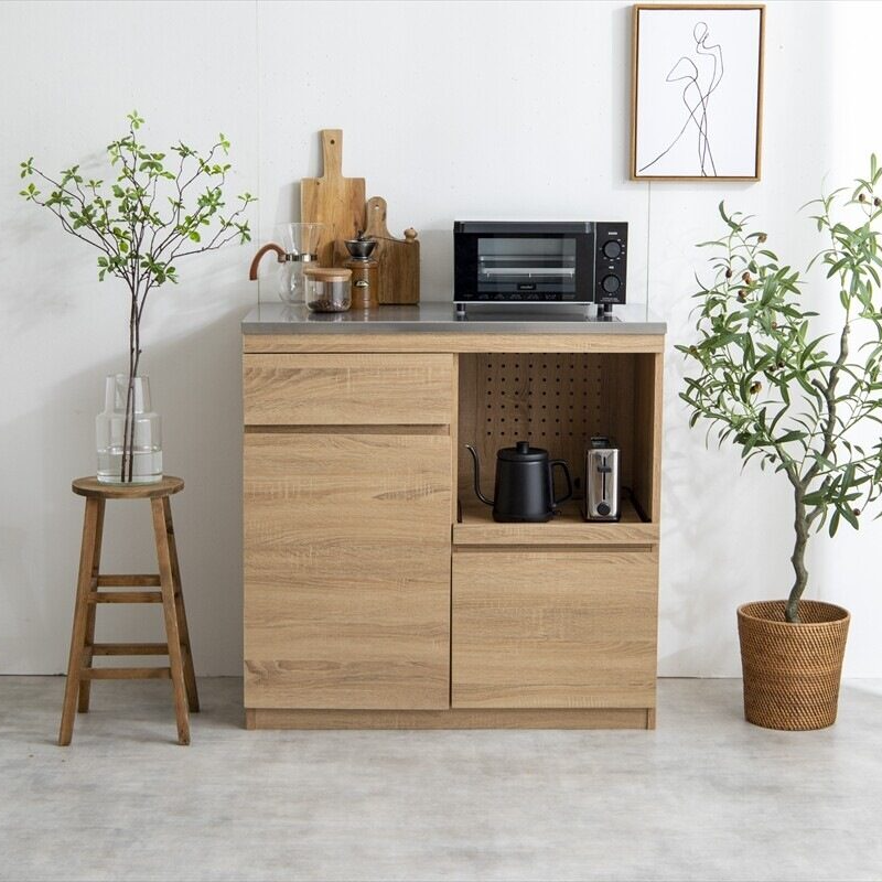 北欧モダン木製ステンレス天板レンジ台