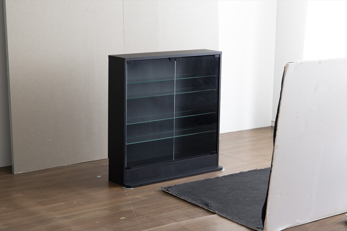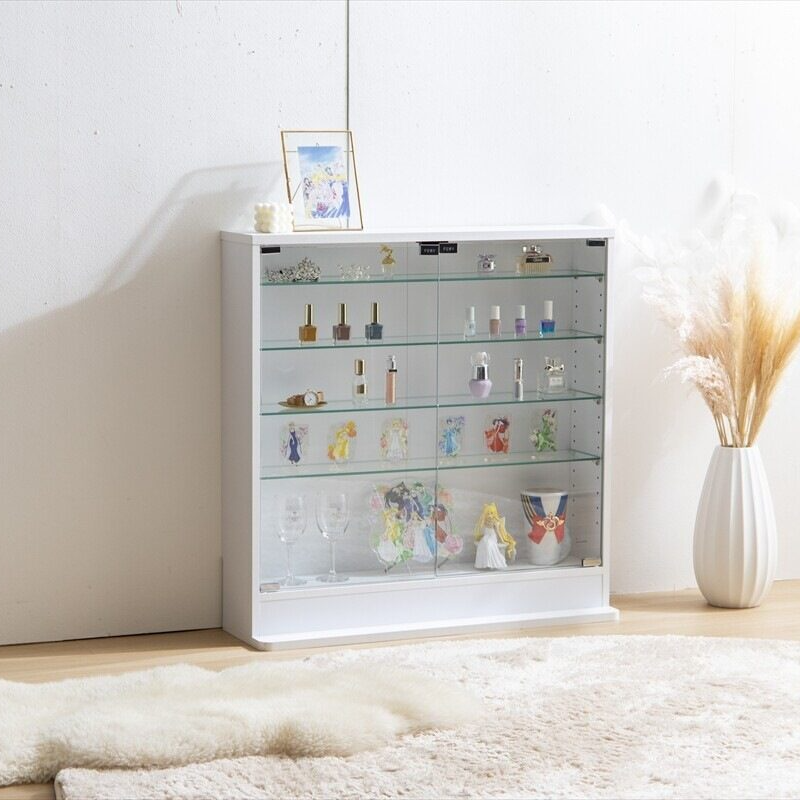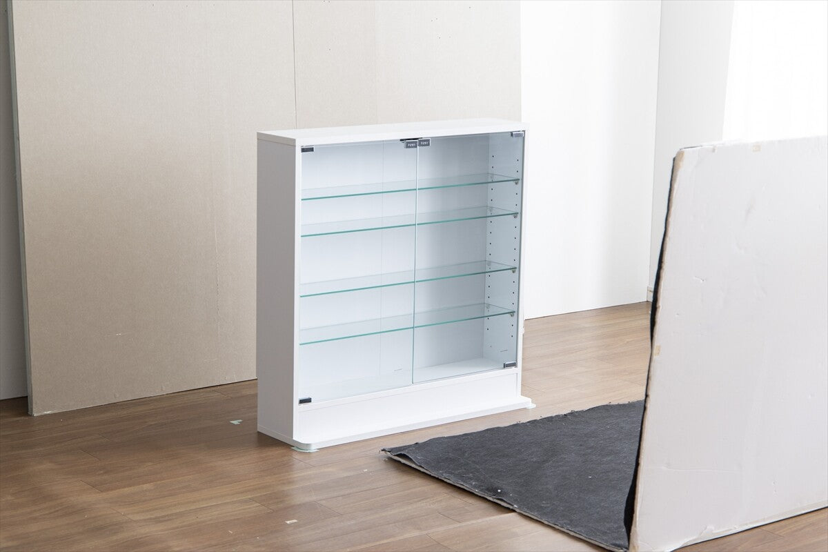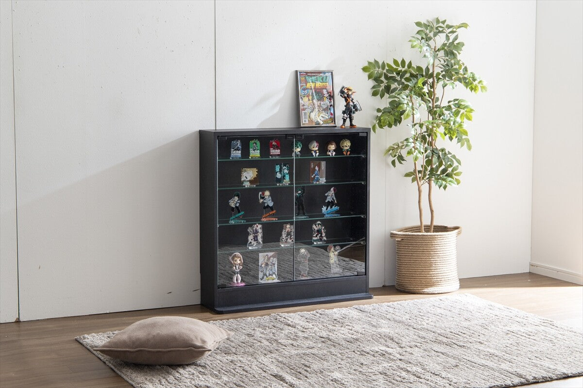 シンプル木製ガラス棚板ワイドタイプコレクションケース