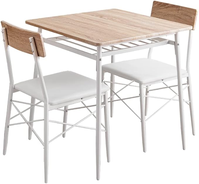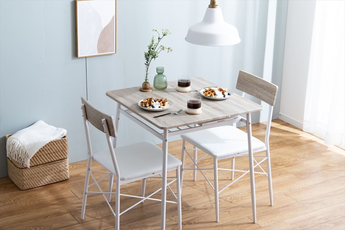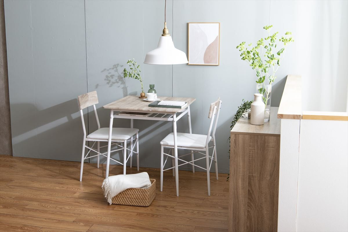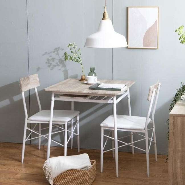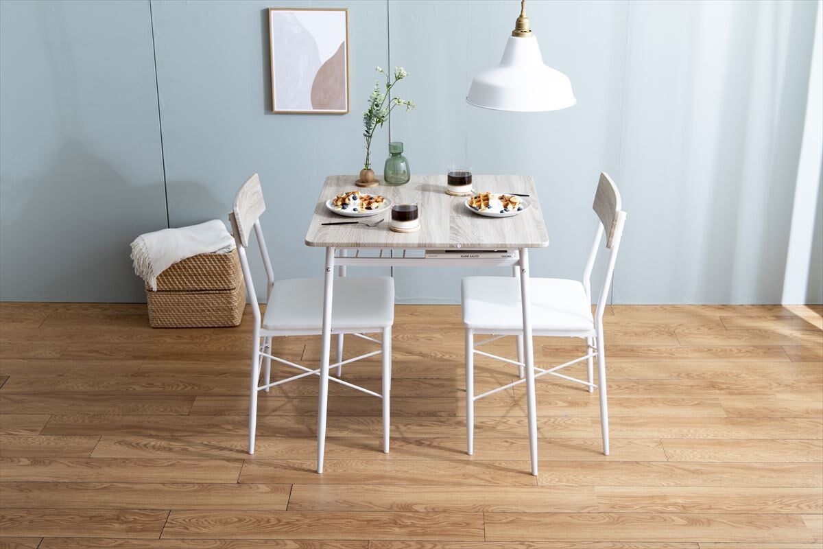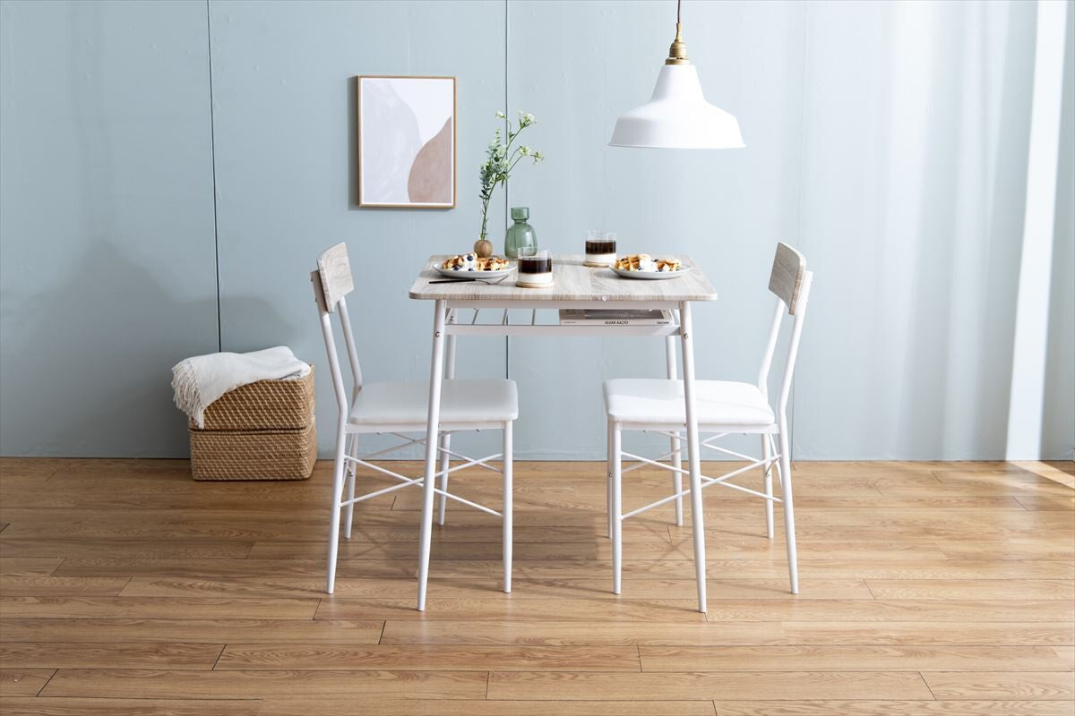モダンダイニングテーブル3点セットは、スタイリッシュでコンパクトなスペースに最適なデザインが特徴です。木目調のテーブルトップと金属製フレームがモダンな印象を与え、耐久性に優れた素材を使用しています。クッション性のあるチェアは快適な座り心地を提供し、組み立ても簡単。ホワイトフレームとライトウッド、ブラックフレームとダークウッドのカラーバリエーションがあります。小さなダイニングルームやキッチンに最適なこのセットで、食事の時間を特別なものに。