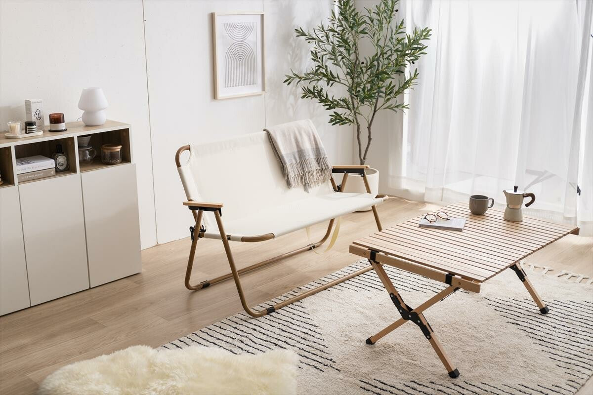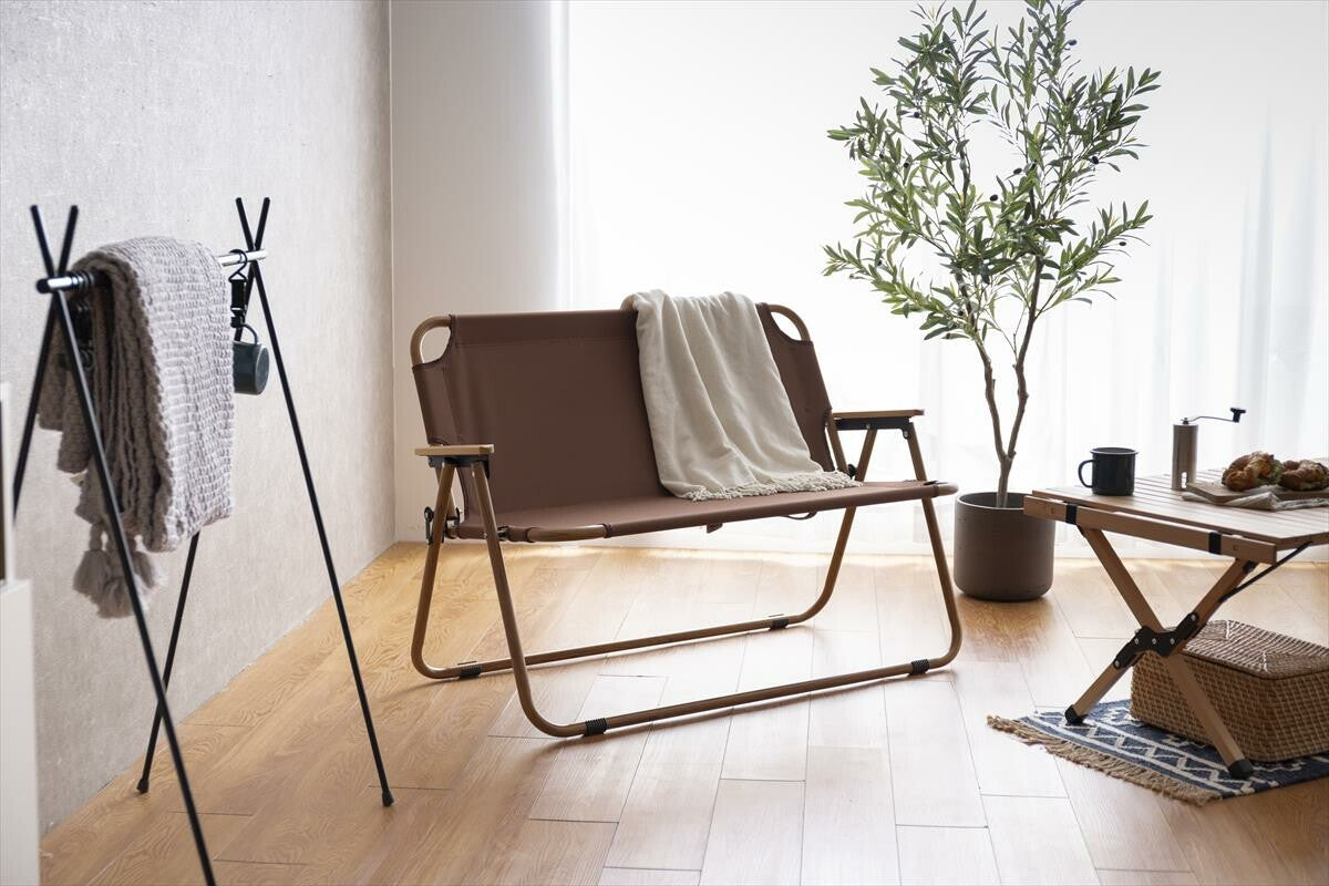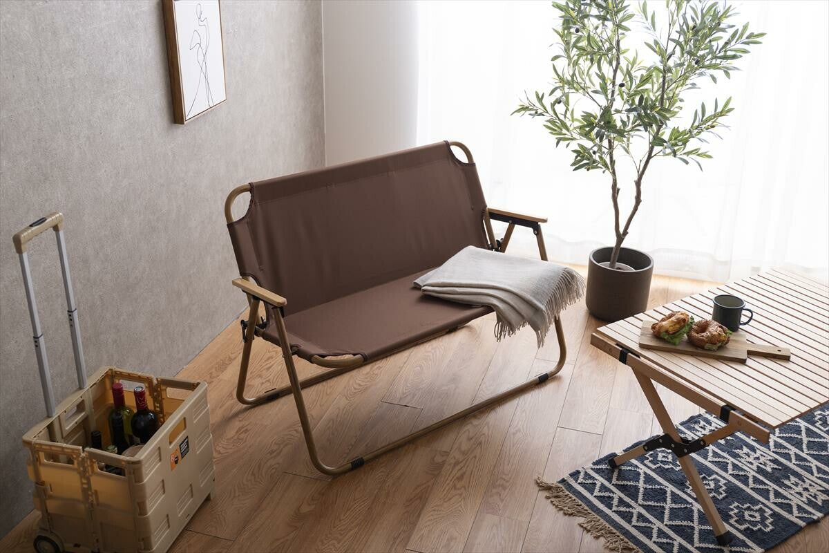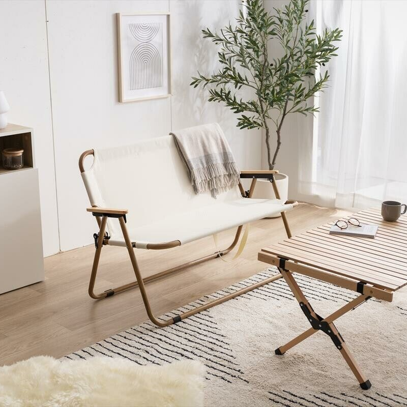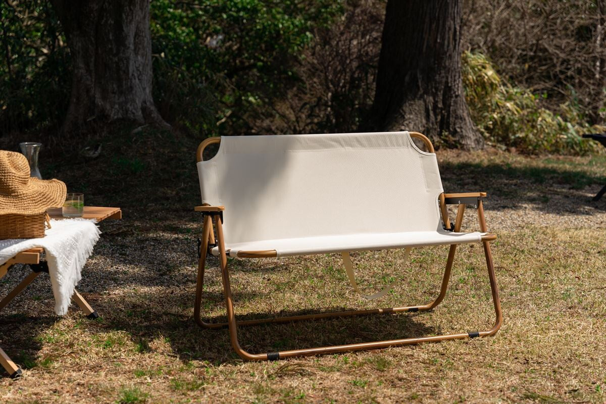 ナチュラル2人掛けアウトドア折りたたみベンチチェア