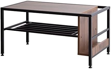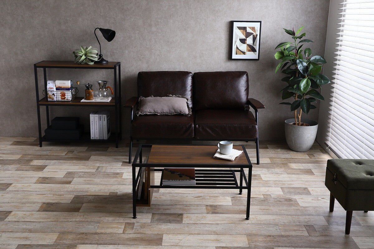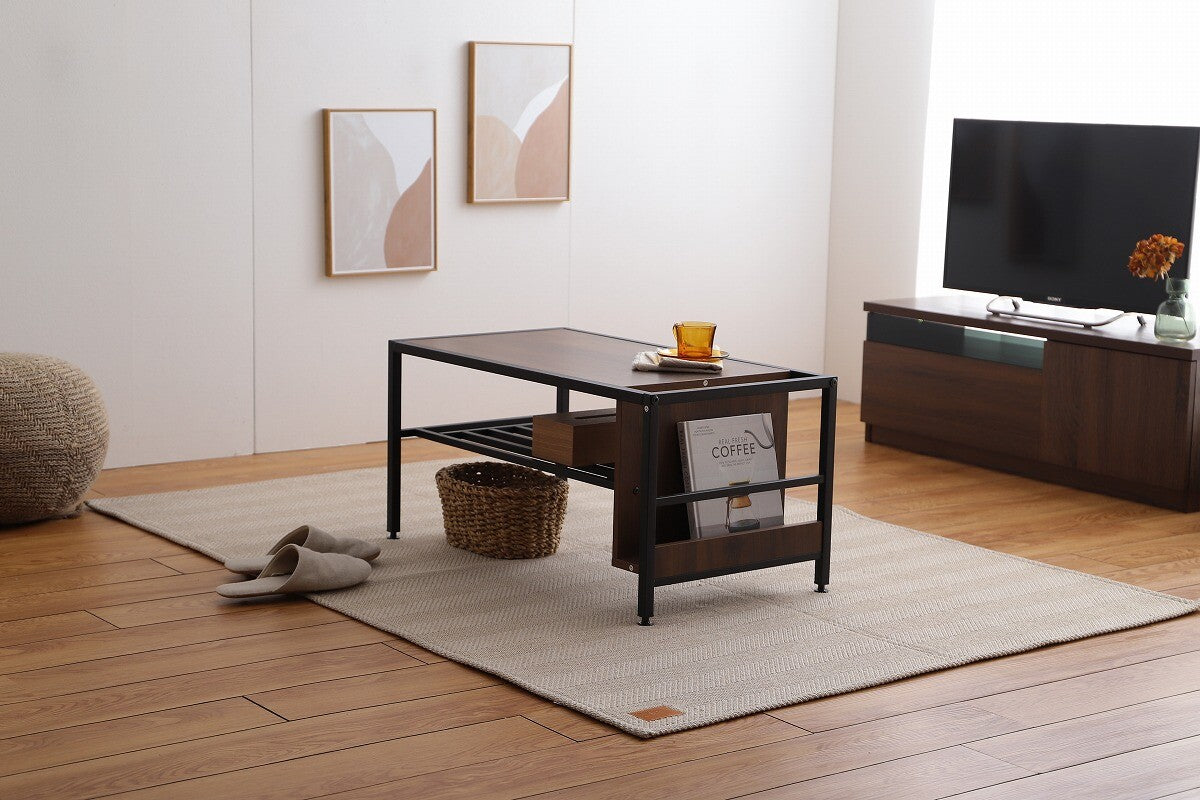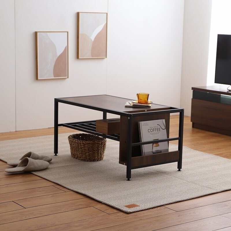 レトロモダン木製天板スチール脚収納付きセンターテーブル