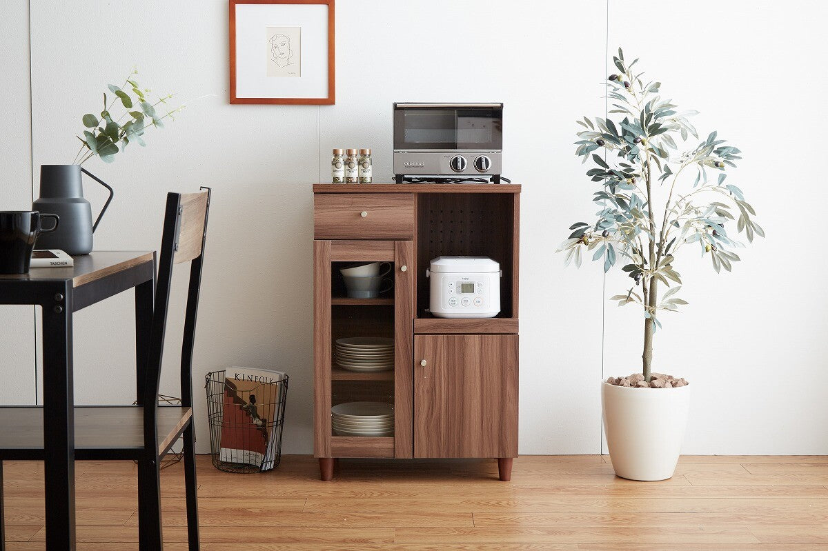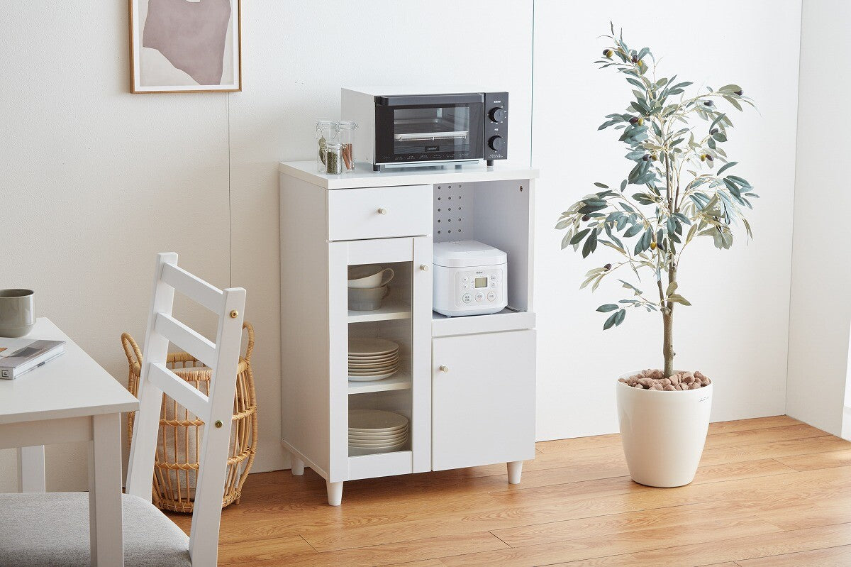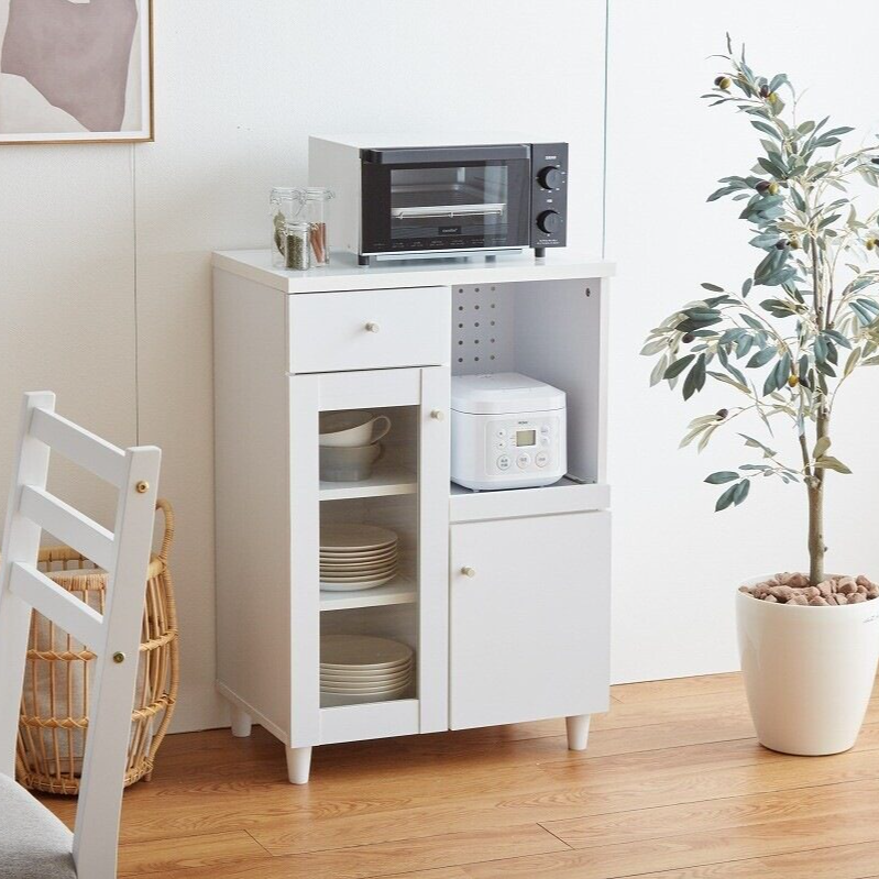 シンプルモダン木製ガラス扉・スライドトレー付きスリムレンジ台は、機能性とデザイン性を兼ね備えた完璧なキッチン収納ソリューションです。ガラス扉とスライドトレーにより、調理器具や食材を効率的に収納しつつ、スタイリッシュな外観を保ちます。幅60cm、奥行39.5cm、高さ88cmのコンパクトサイズで、限られたスペースにもぴったり。木製のナチュラルな風合いがキッチンに温かみを加え、ホワイトとブラウンの2色展開でインテリアに合わせて選べます。キッチンをより効率的かつおしゃれに演出したい方におすすめです。