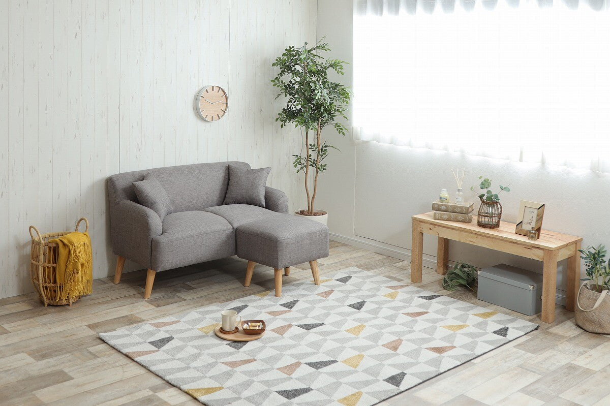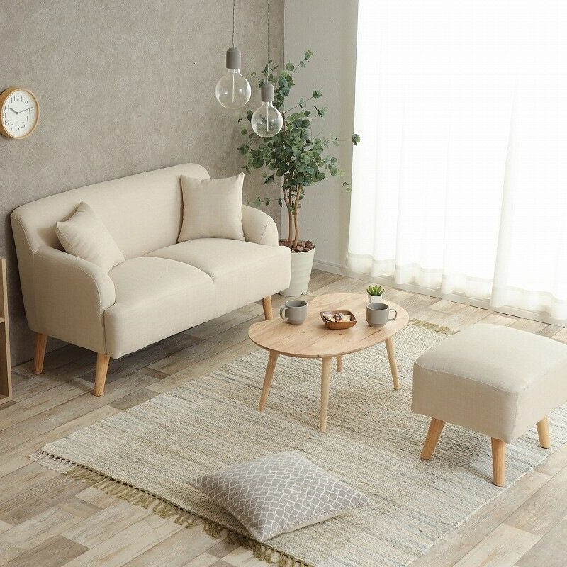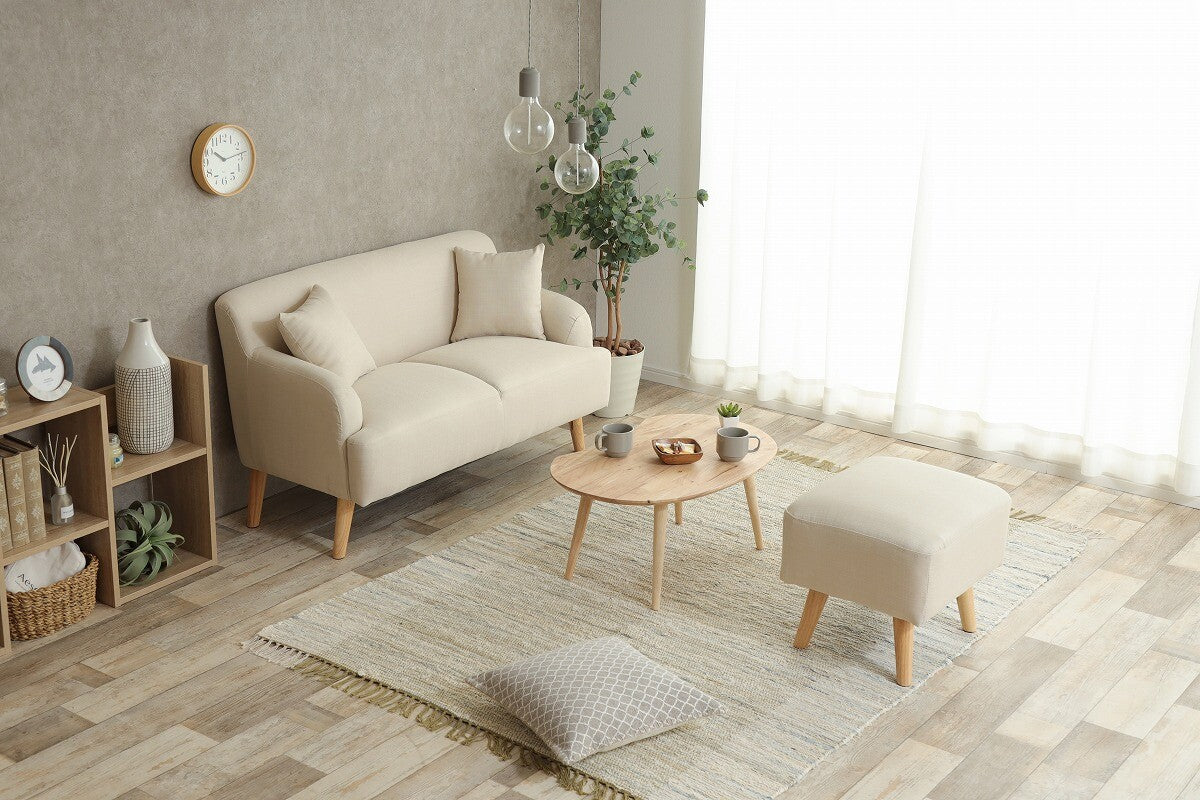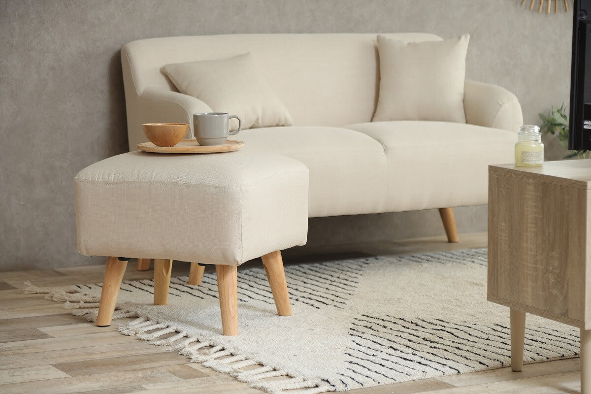 北欧天然木脚オットマン付き2人掛けファブリックソファ