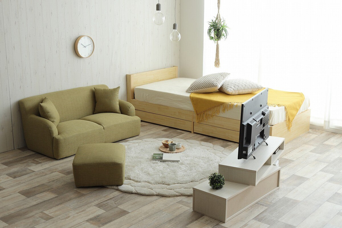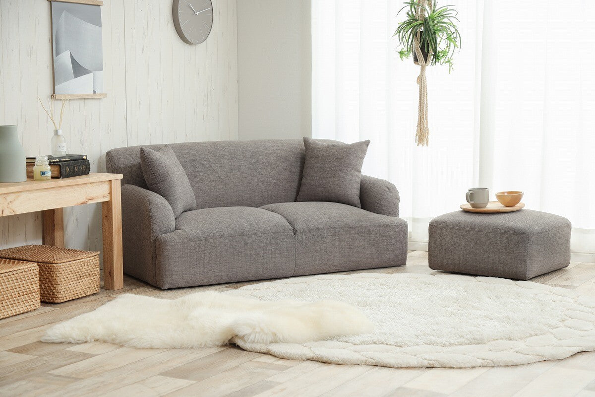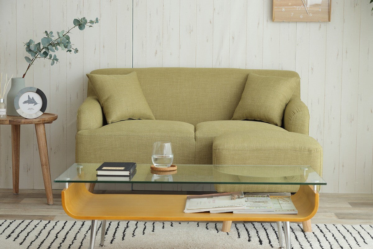 北欧天然木脚オットマン付き2人掛けファブリックソファ