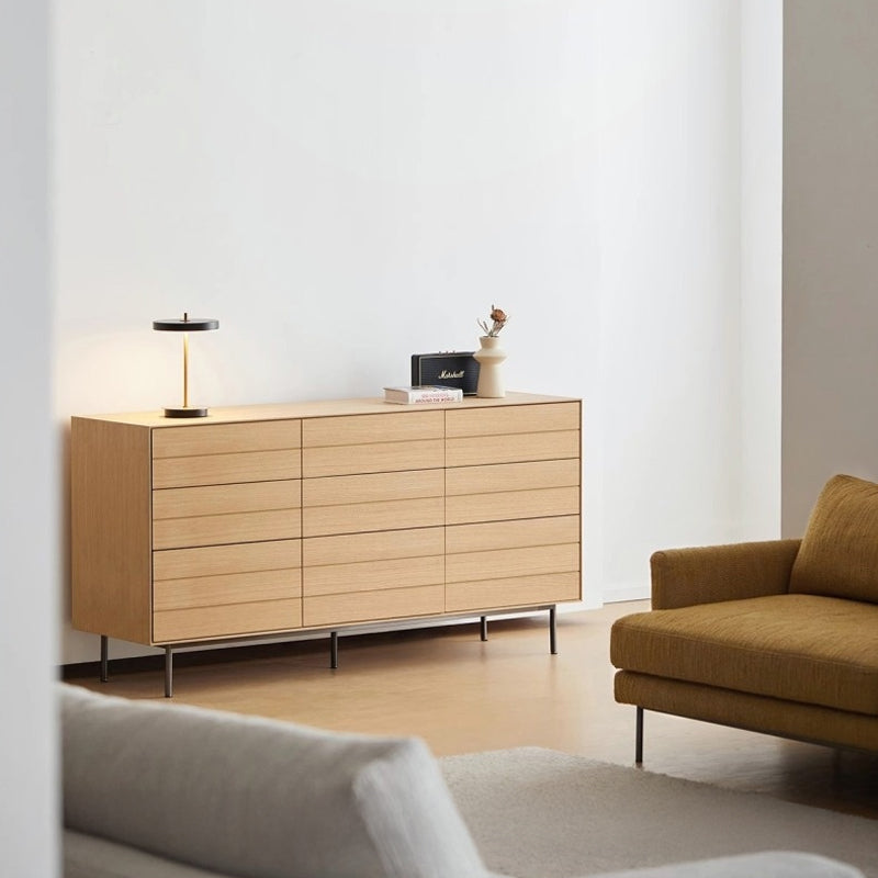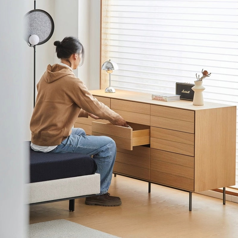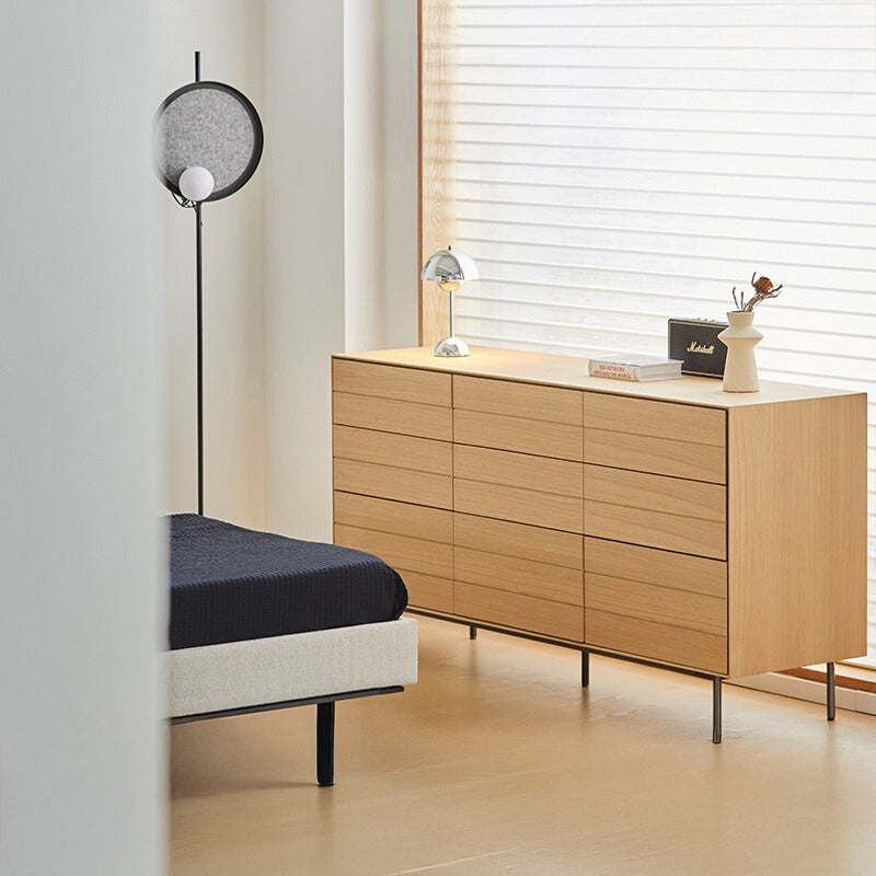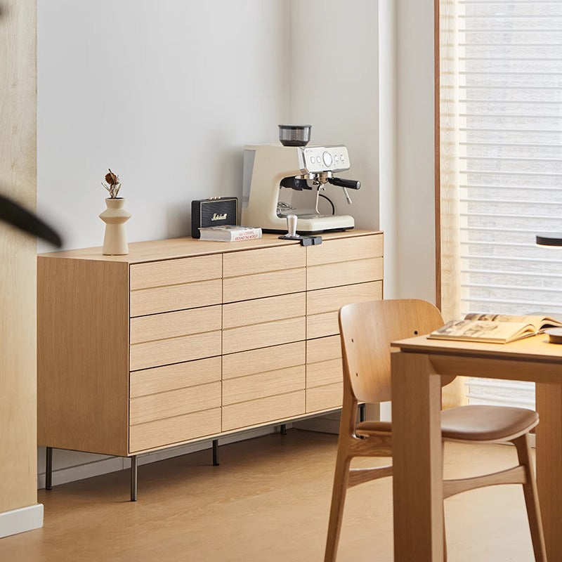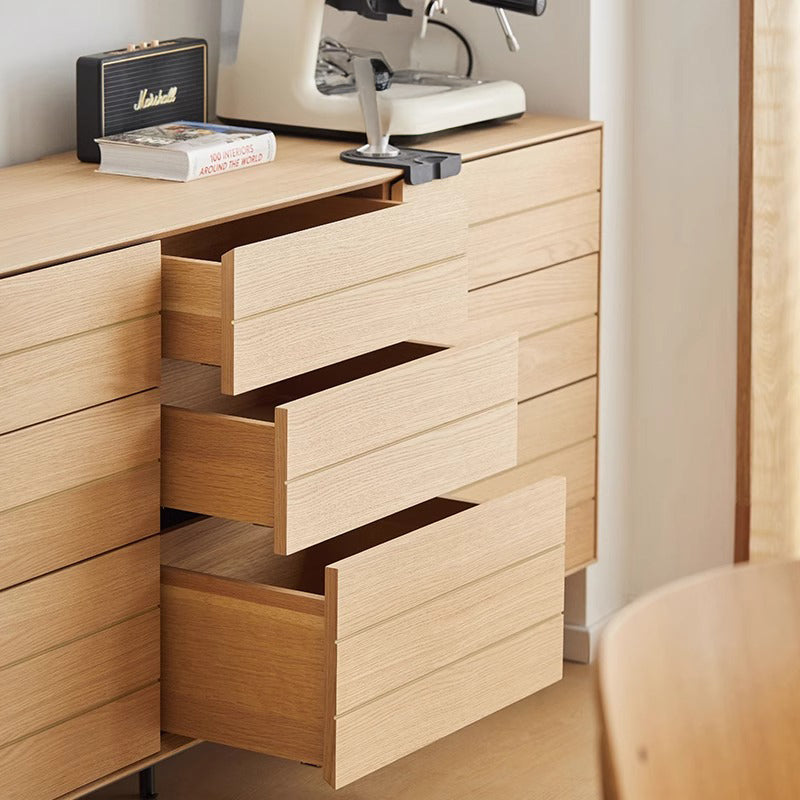 木製9マス多収納キャビネットは、シンプルで洗練されたデザインが特徴です。北米産ホワイトオークを使用し、自然な風合いと高級感を兼ね備えています。9つの引き出しを備え、大容量で衣類や小物を整理整頓できます。モダンなデザインと高品質な素材で、リビングやダイニング、ベッドルームなど様々な空間にフィットします。環境に優しい水性ニス仕上げで、耐久性も抜群。組み立て式で簡単に設置可能なこのキャビネットは、機能性と美しさを兼ね備えた理想的な収納家具です。