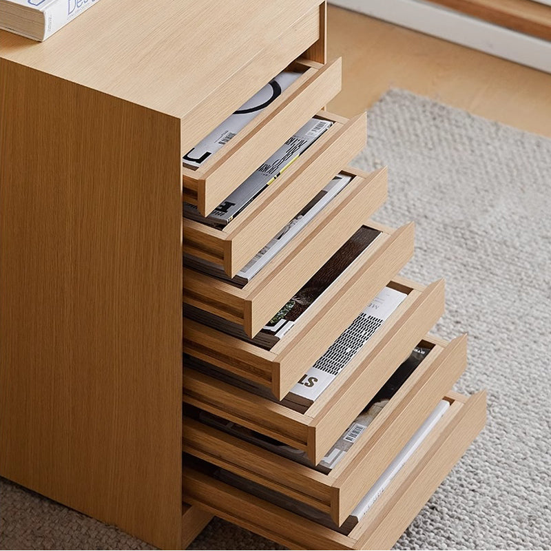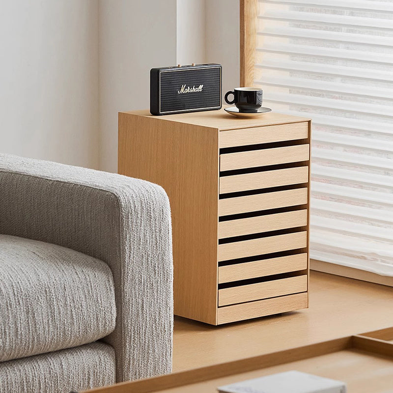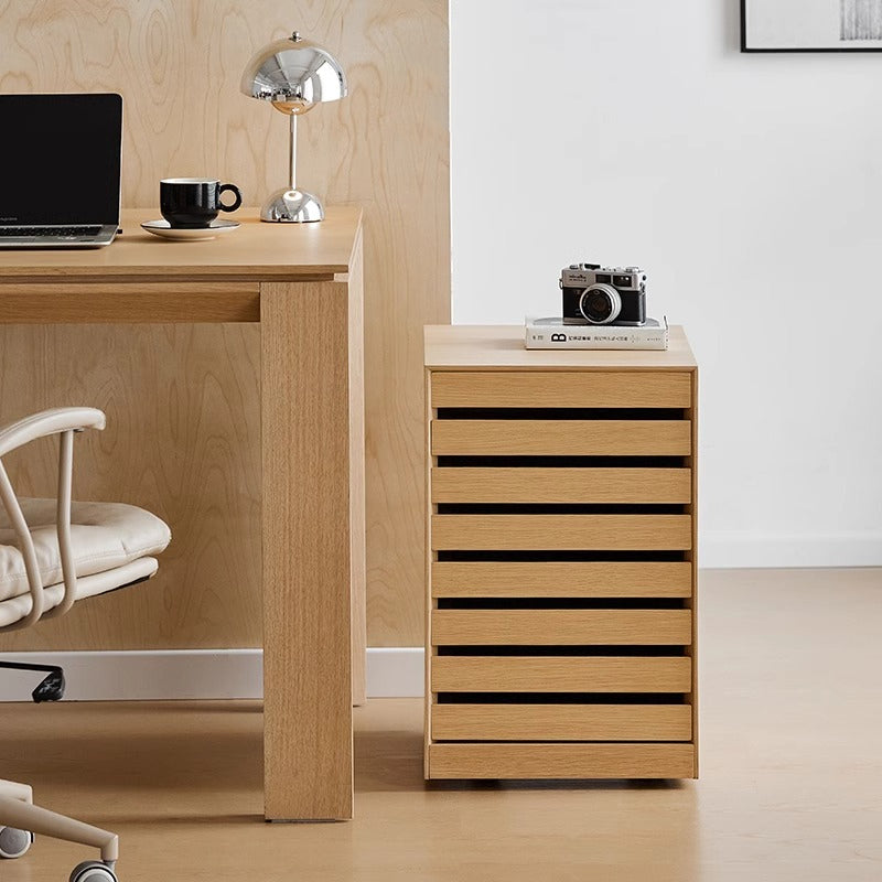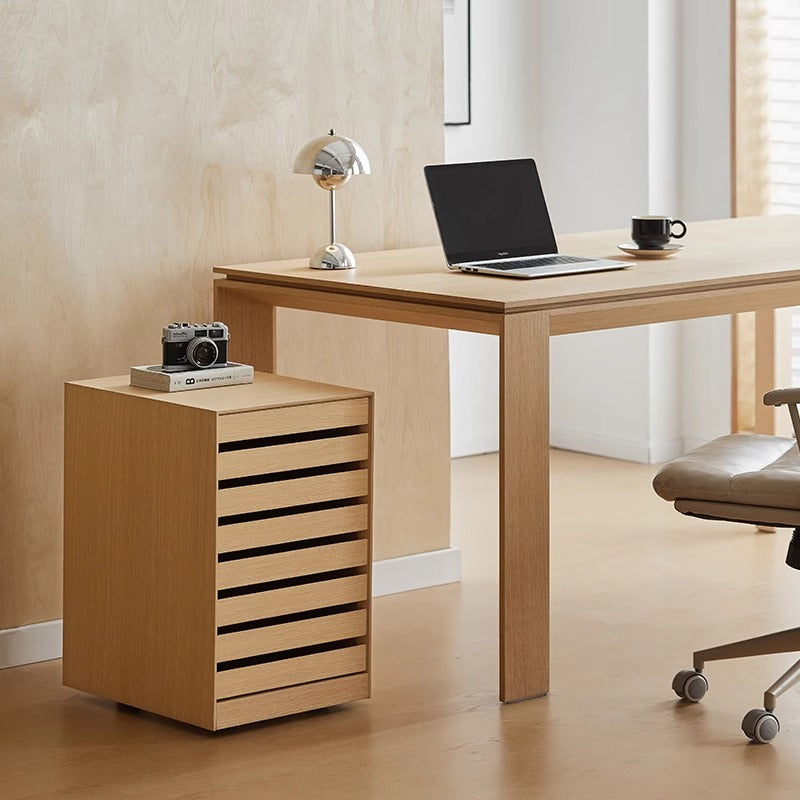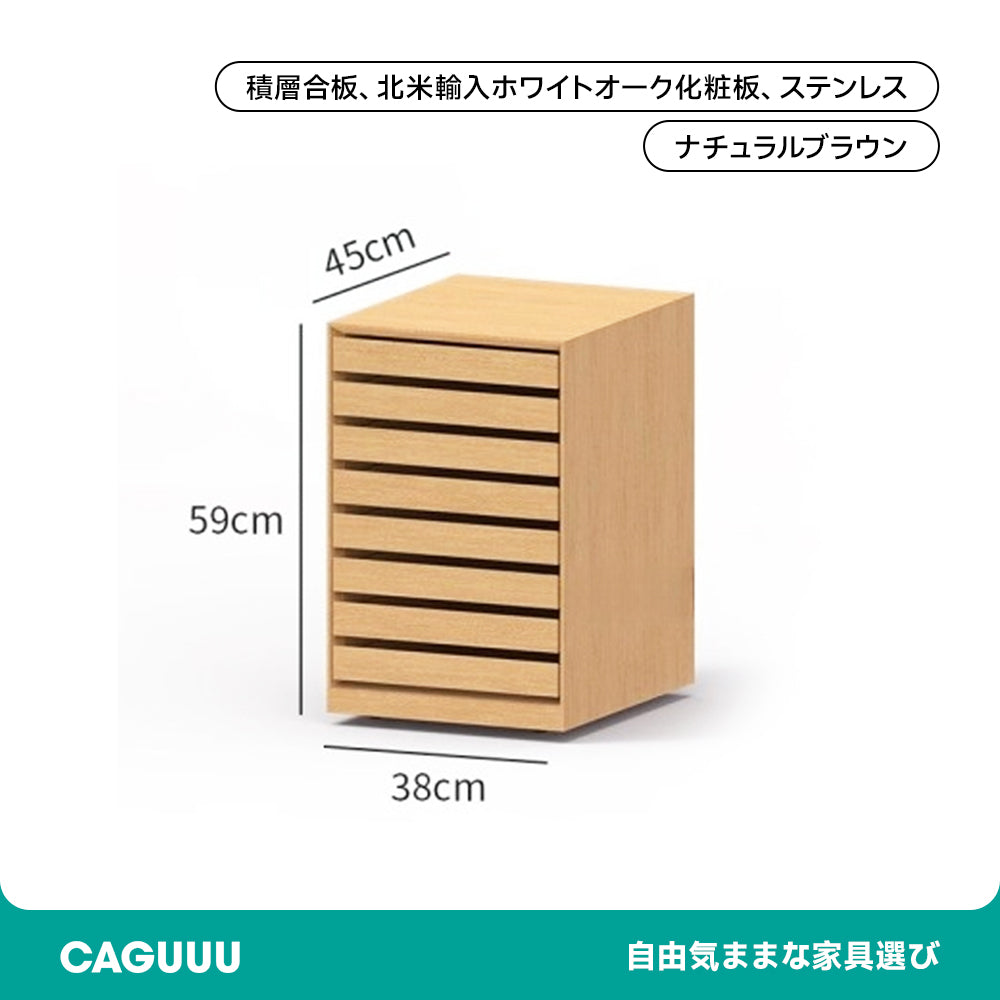 スリットデザインサイドチエストは、洗練されたデザインと機能性を兼ね備えた収納家具です。天然木合板と北米産ホワイトオークを使用し、上質で温かな手触りを実現。スリットデザインがスタイリッシュで、どんなインテリアにも調和します。引き出しはスムーズで耐久性のある木製スライドレールを採用し、隠しキャスター付きで移動も簡単。リビングや書斎、ダイニングなど様々なシーンで活躍します。