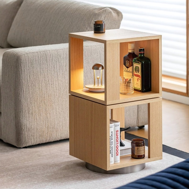 この回転式サイドテーブルは、モダンで洗練されたデザインが特徴です。北米産のホワイトオークを使用し、自然な木目の美しさを引き出しています。360度回転することで、使いやすさと機能性を兼ね備えています。天然木合板とステンレス製のベースを使用し、耐久性と安定感に優れています。リビングやベッドサイドなど、様々なシーンで活用でき、組み立て不要で届いたその日からすぐに使用可能です。あなたの空間をよりスタイリッシュに演出します。