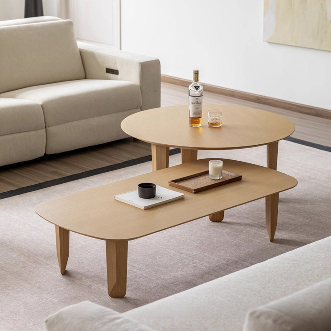 木製コーヒーテーブルは、シンプルで洗練されたデザインが特徴の多機能家具です。選べる4つのタイプで、どんなインテリアにもマッチ。ラウンド型とスクエア型のサイズがあり、積層合板とホワイトオーク化粧板を使用した自然な木目が美しい仕上がり。ステンレスの補助材と水性ニスの塗装で耐久性と美しさを兼ね備えています。組み立て式で簡単に設置可能。リビングルームや応接間にぴったりで、空間をスタイリッシュに演出します。