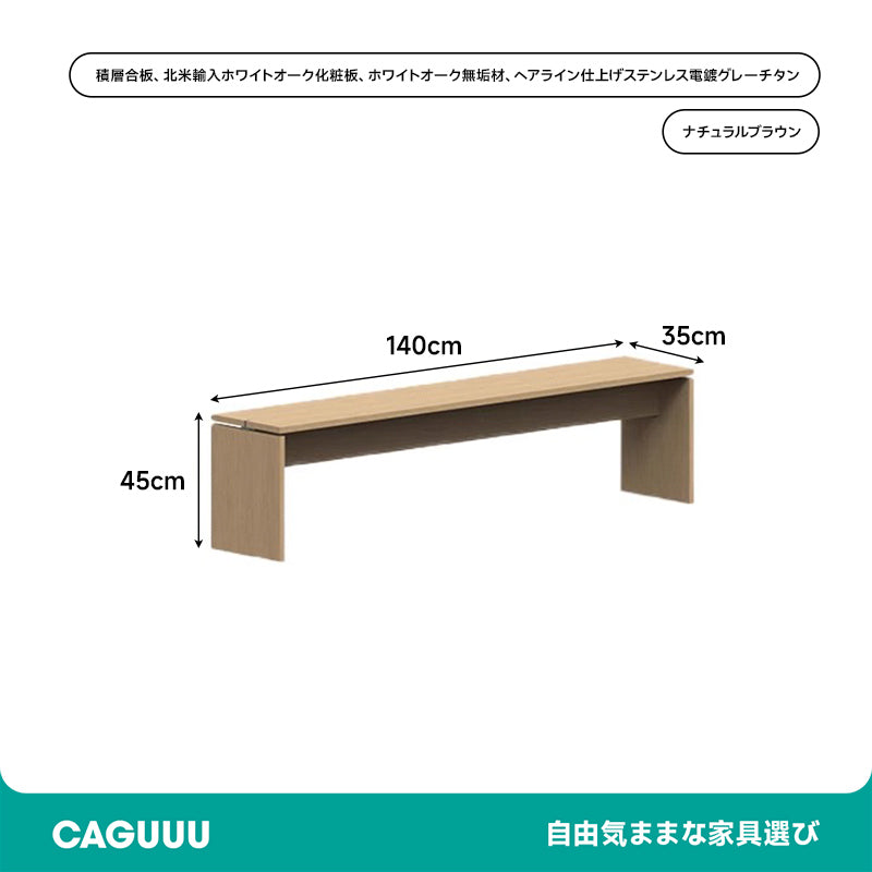 シンプルモノトーンベンチは、北米産ホワイトオーク材を使用した高品質なベンチです。自然な木目と質感が特徴で、どんなスタイルの部屋にもマッチします。幅120cmから180cmまでのサイズ展開があり、様々なスペースに対応可能です。積層合板とホワイトオーク材を使用し、ステンレスのヘアライン仕上げが施されています。無駄のない美しいフォルムで、どんなインテリアにも溶け込みます。床のキズを防止するフェルト付きで安心して使用でき、レーザー加工による防湿・抗菌仕様で長持ちします。