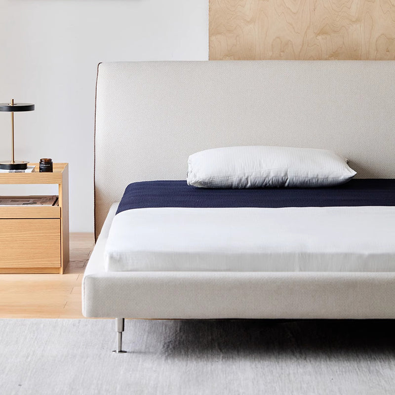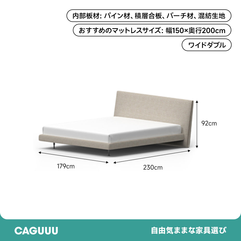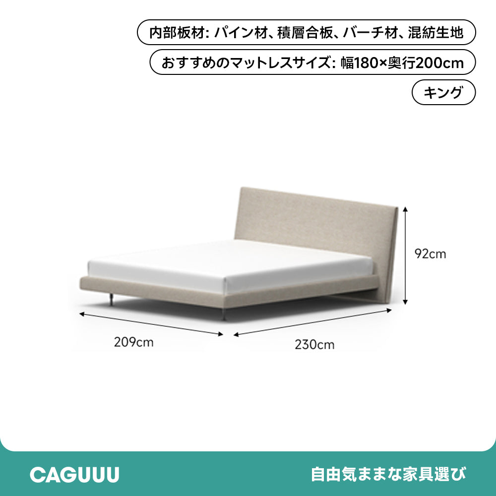 エレガントファブリックベッドは、シンプルで洗練されたデザインが特徴です。内部にはパイン材、合板、バーチ材が使用され、耐久性と安定性を兼ね備えています。高品質な混紡生地で覆われた表面は、肌に優しく、シワになりにくい設計です。ミニマリストなラインがどんなインテリアにも調和し、高めの背もたれは快適なサポートを提供します。幅230cm、高さ92cm、長さ179cmまたは209cmから選べ、ワイドダブルとキングサイズのマットレスに対応。高反発ウレタンが充填され、身体に優しくフィットし、快適な眠りをサポートします。ロボット掃除機が通る高さで掃除も簡単。組み立ても簡単で、寝室をスタイリッシュに演出します。