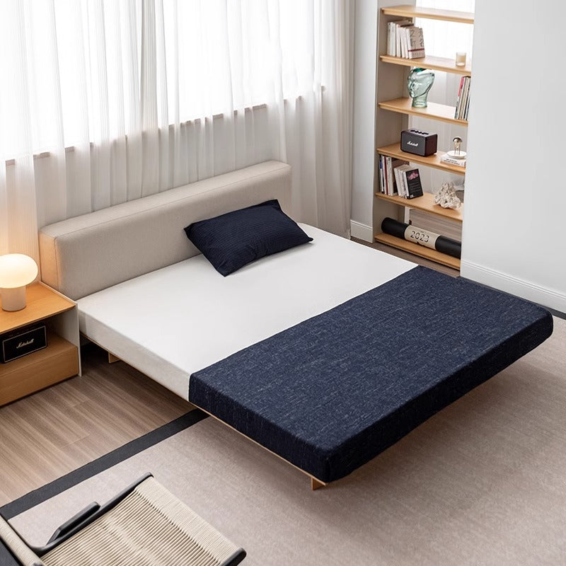 北欧風ファブリックベッドは、シンプルで洗練されたデザインが特徴です。積層合板と北米産ホワイトオーク化粧板を使用した堅牢なフレームで、耐久性と美しさを兼ね備えています。ヘッドボードは取り外し可能で、スペースを有効活用。高反発ウレタンのクッション材で快適な睡眠をサポートします。通気孔付きの床板でカビを防ぎ、滑り止めマットがマットレスのずれを防止。ベージュとライトグレーの2色展開で、どんなインテリアにも自然に溶け込みます。