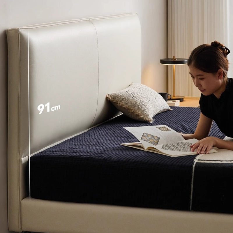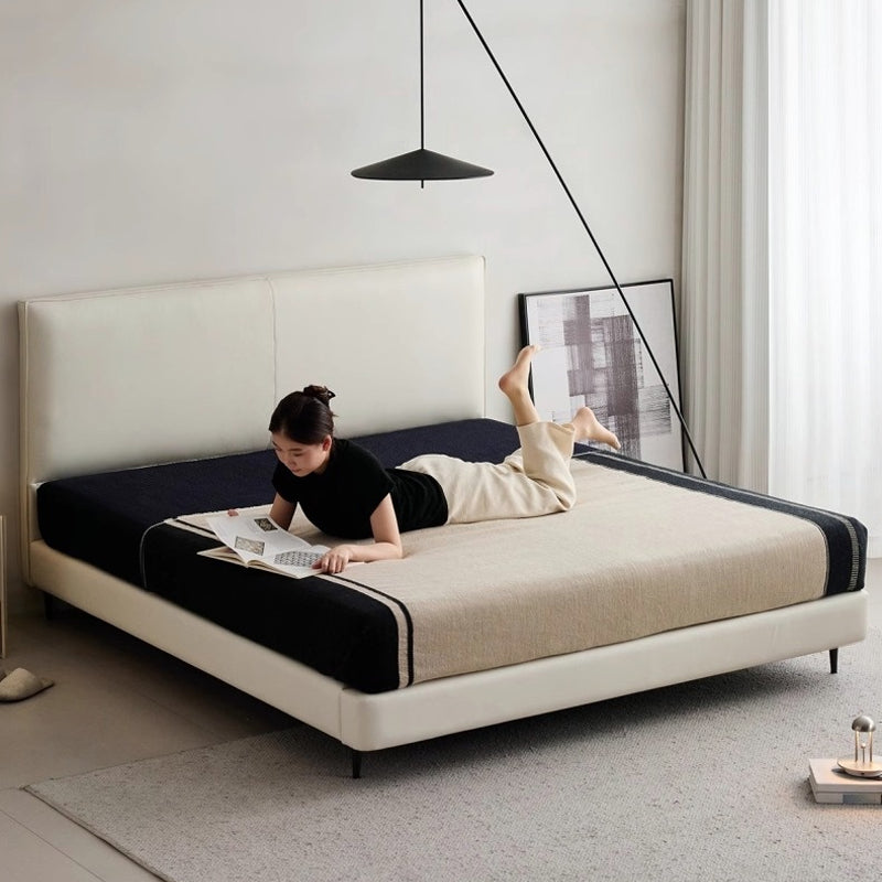 本革ファブリックベッドは、上質なトップグレインレザーを使用したエレガントなデザインが特徴です。シンプルで洗練された外観はどんなインテリアにも調和し、快適なクッションと頑丈な構造で長期間の使用にも耐えます。幅150cmと180cmの2サイズ展開で、コンパクトなデザインが寝室のスペースを有効に活用します。安全設計と簡単な組み立てが可能で、理想的な睡眠環境を提供します。