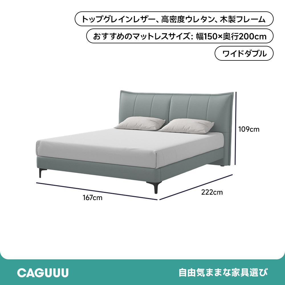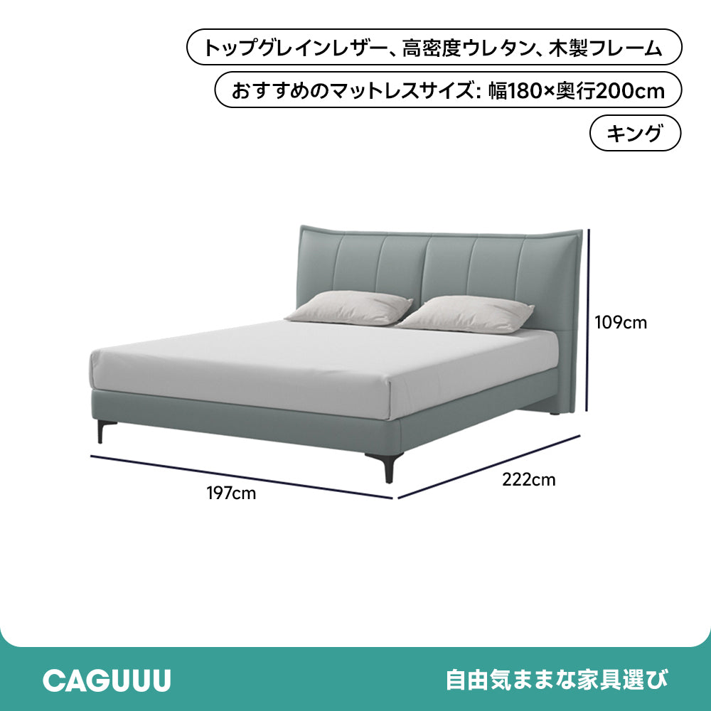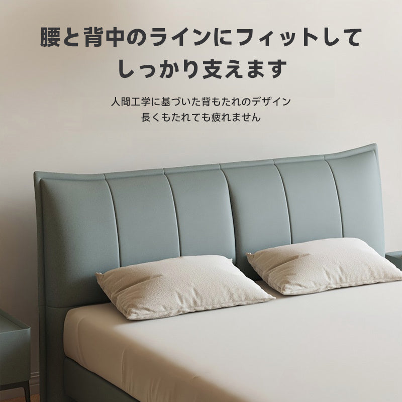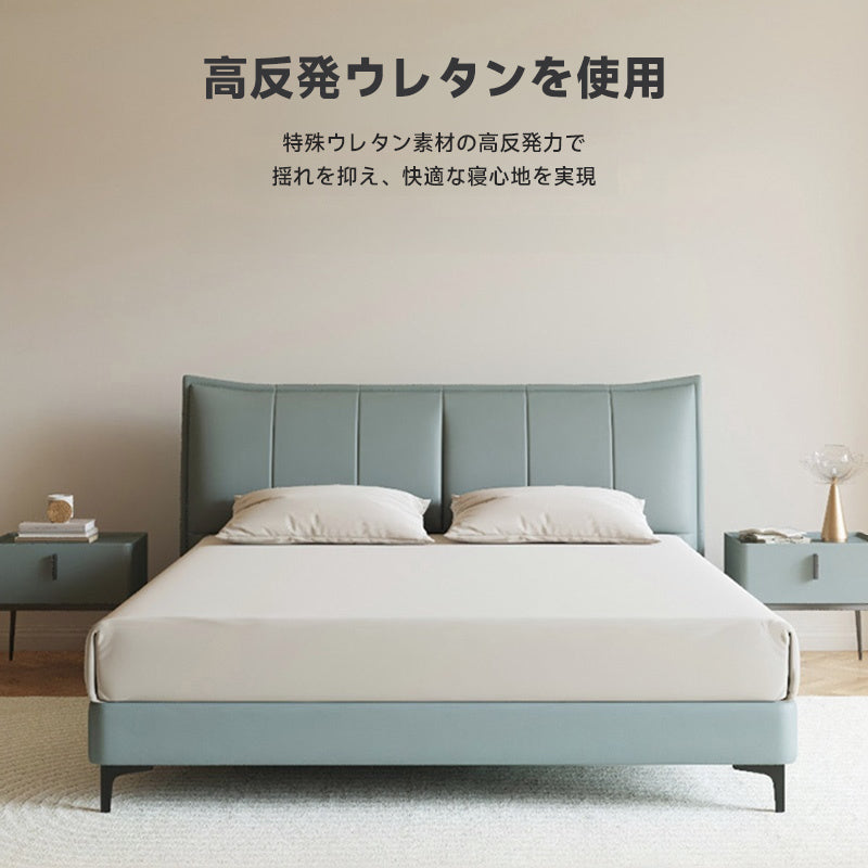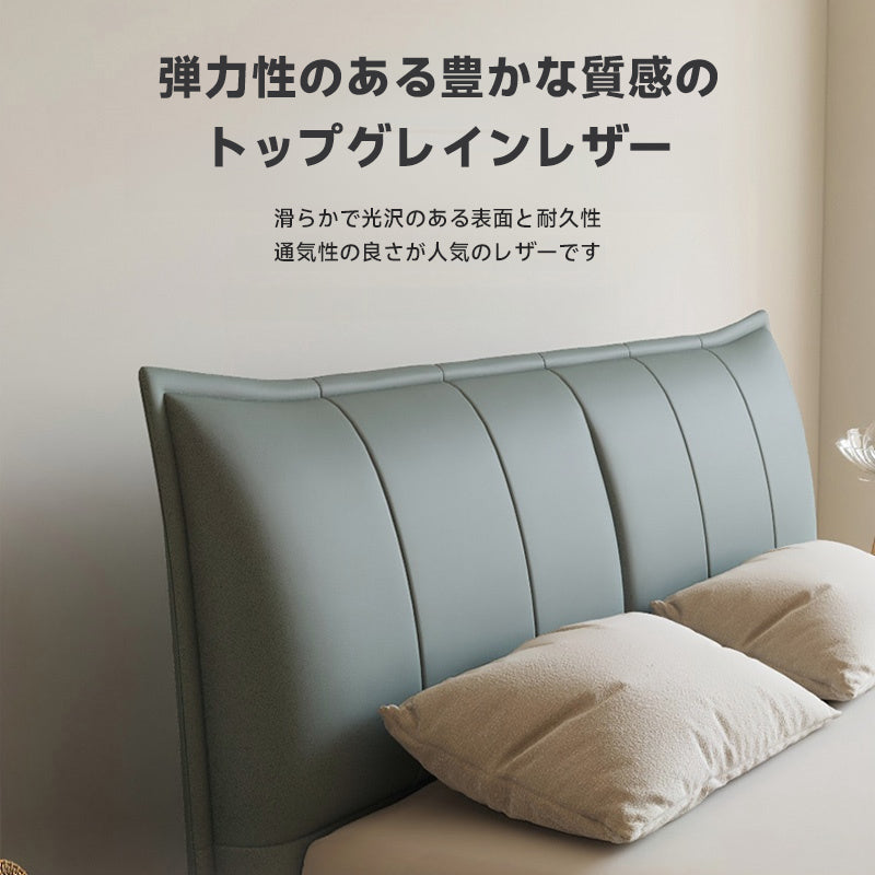 グリーンクッションレザーベッドは、イタリアンモダンスタイルを取り入れたデザインで、寝室を格上げします。トップグレインレザーを使用し、滑らかで光沢のある表面と耐久性、通気性の良さが特徴です。高密度ウレタンを使用したクッションは、高反発で揺れを抑え、快適な寝心地を実現します。エルゴノミックデザインの背もたれが腰と背中をしっかり支え、長時間寄りかかっても疲れません。炭素鋼素材のスタイリッシュな脚部と簡単に組み立てられる設計で、シングル、ワイドダブル、キングサイズの3種類から選べます。CAGUUUのラインナップの一部として、無駄な中間業者や店舗運営コストを省き、低価格で高品質な商品を提供しています。