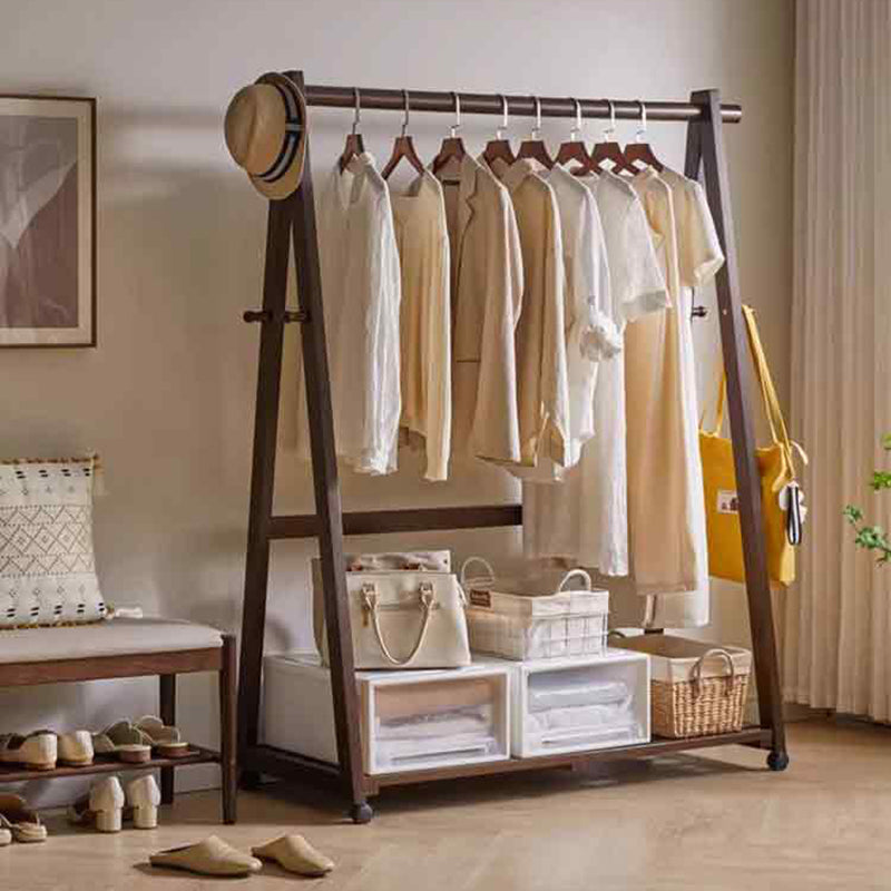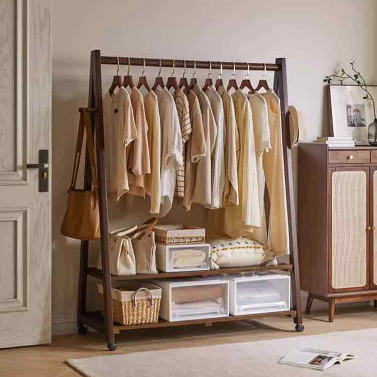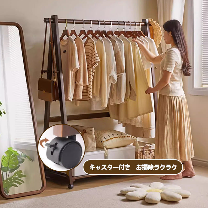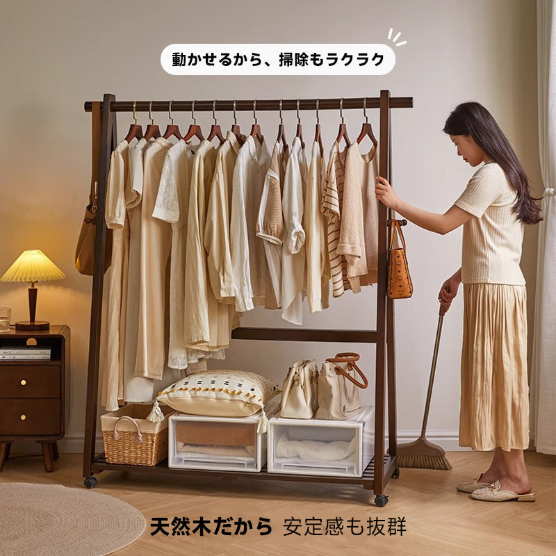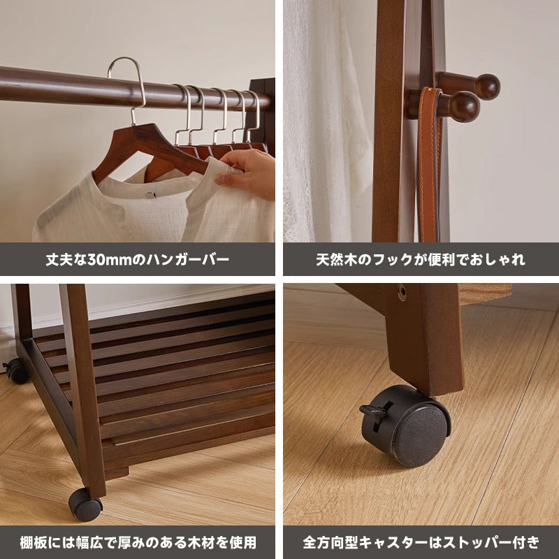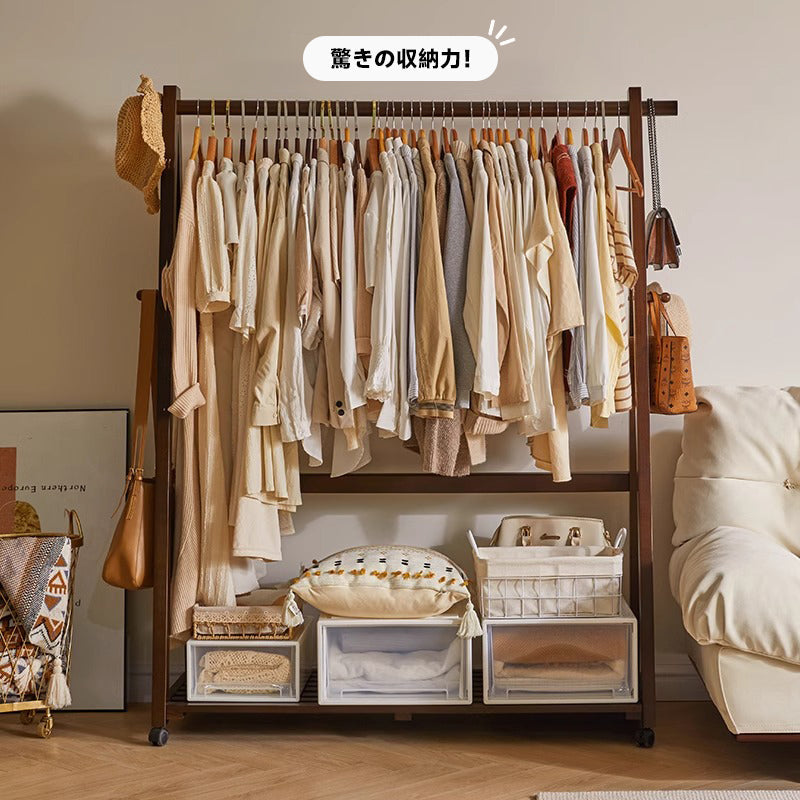 キャスター付き天然木ワードローブ