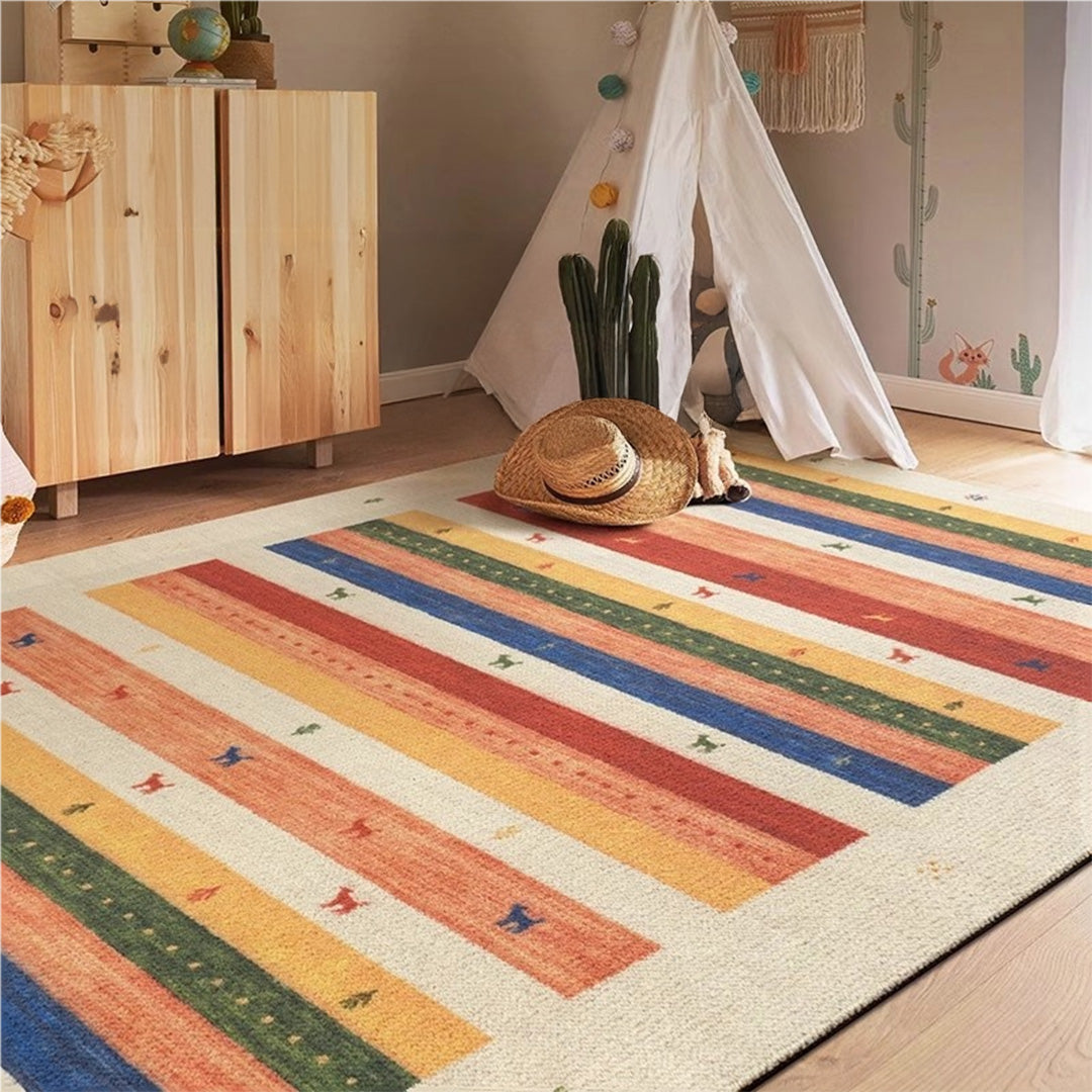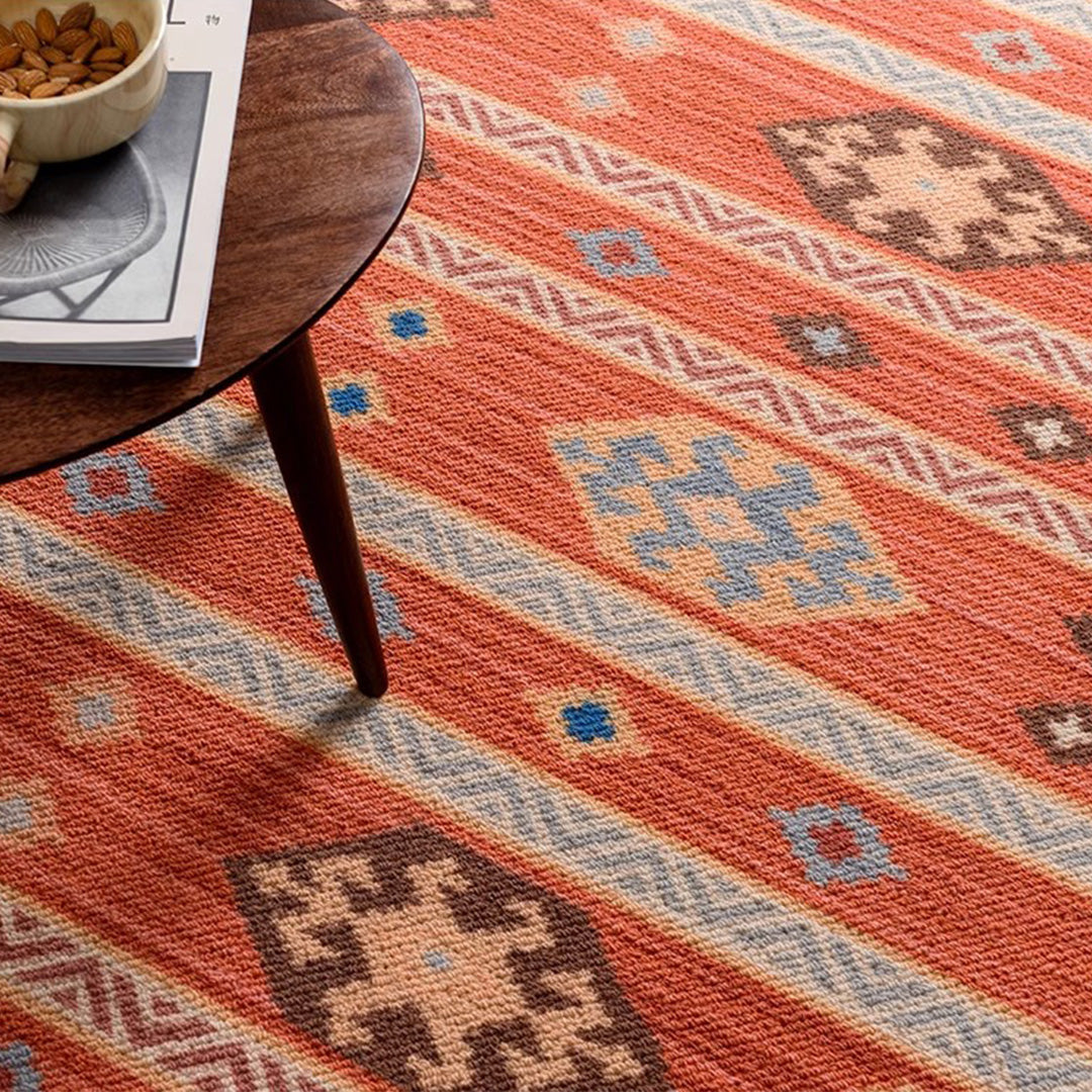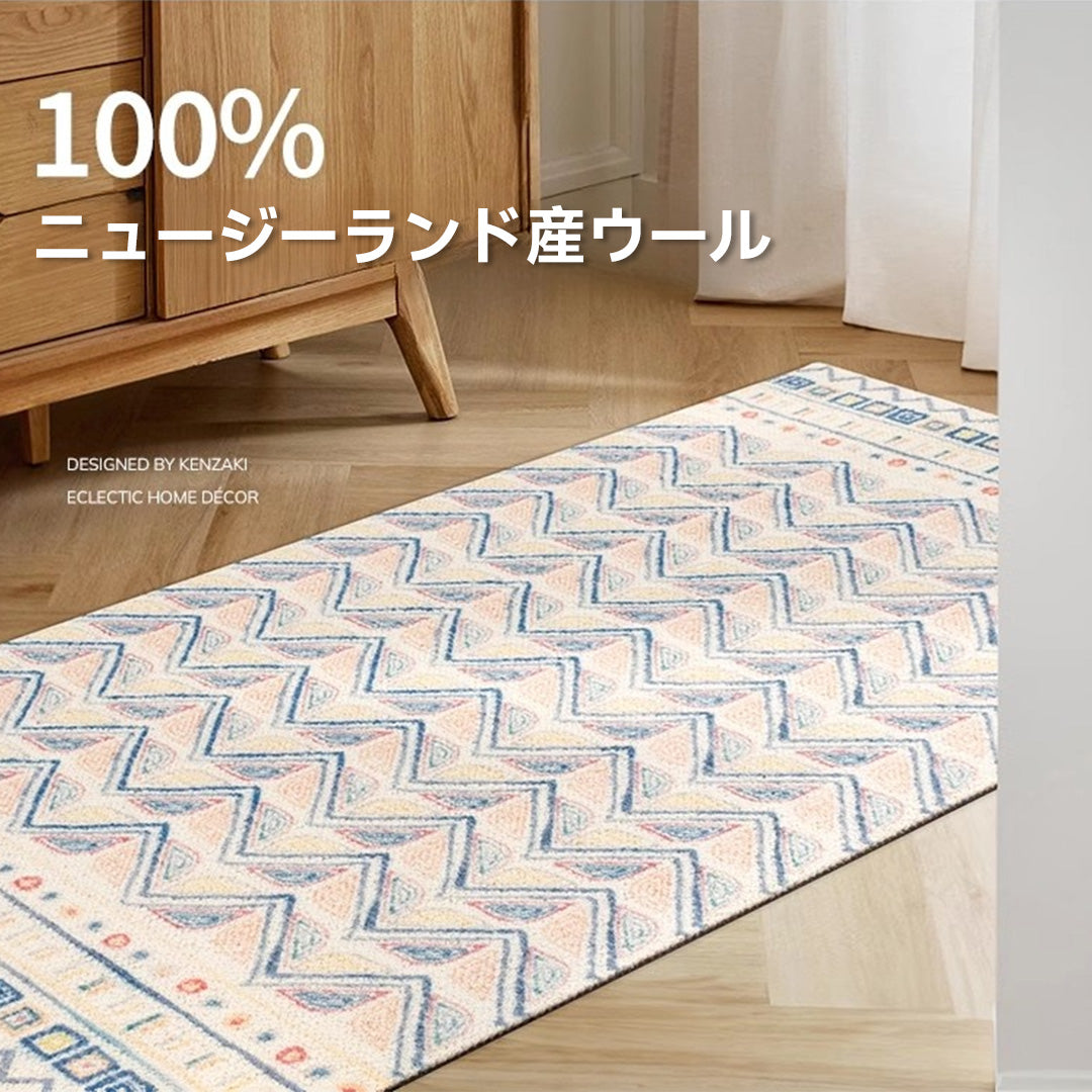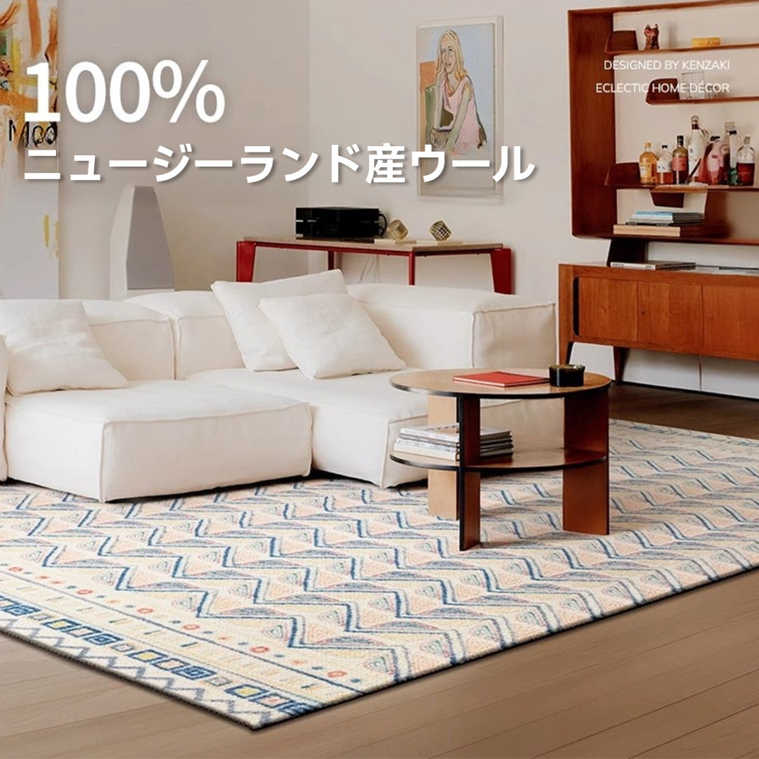 Sahara 高級ニュージーランド産ウールラグは、100%純正ニュージーランドウールを使用し、優れた耐久性と自然な防汚効果を持つ高品質なラグです。柔らかく滑らかな肌触りが特徴で、リビングや寝室、書斎など多様なシーンで使用可能です。カラフルなストライプやユニークなパターンが施され、どんなインテリアにもマッチします。約11mmの厚みがあり、ふっくらとしたボリューム感を提供し、手入れも簡単です。環境に優しく健康的な生活空間を提供するこのラグは、快適な生活空間を彩る理想的なアイテムです。
