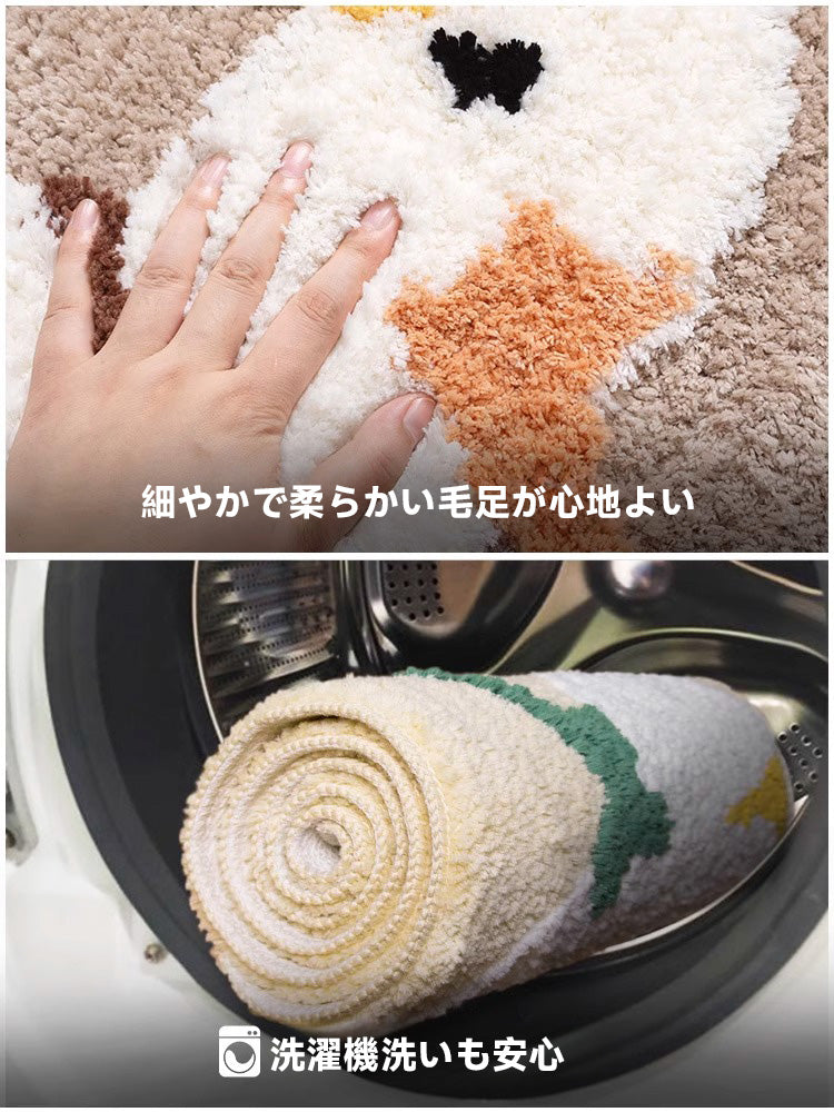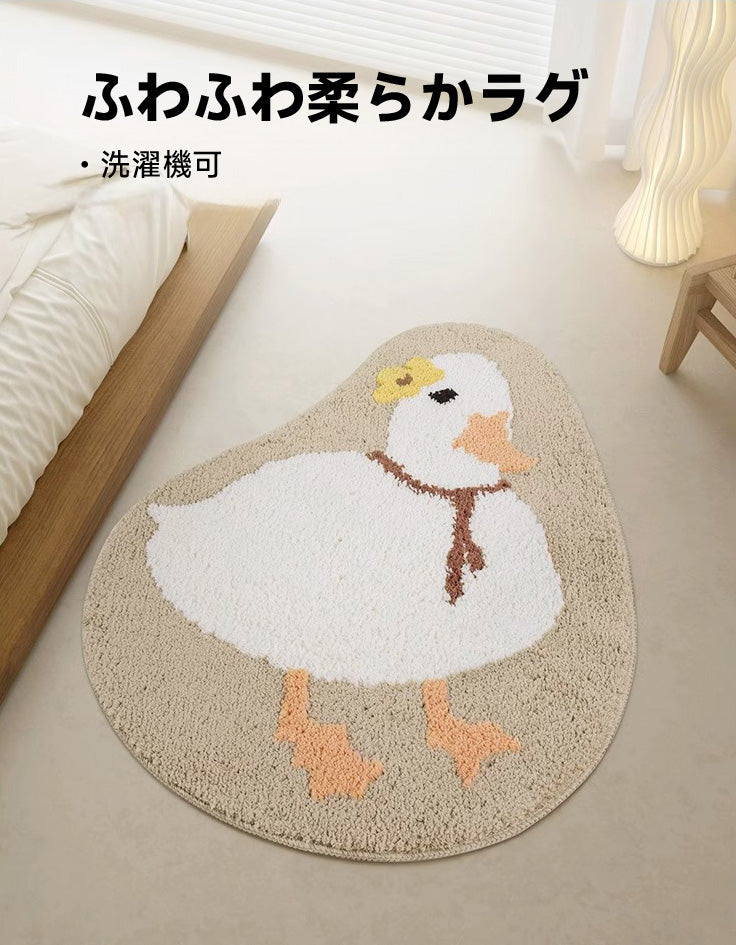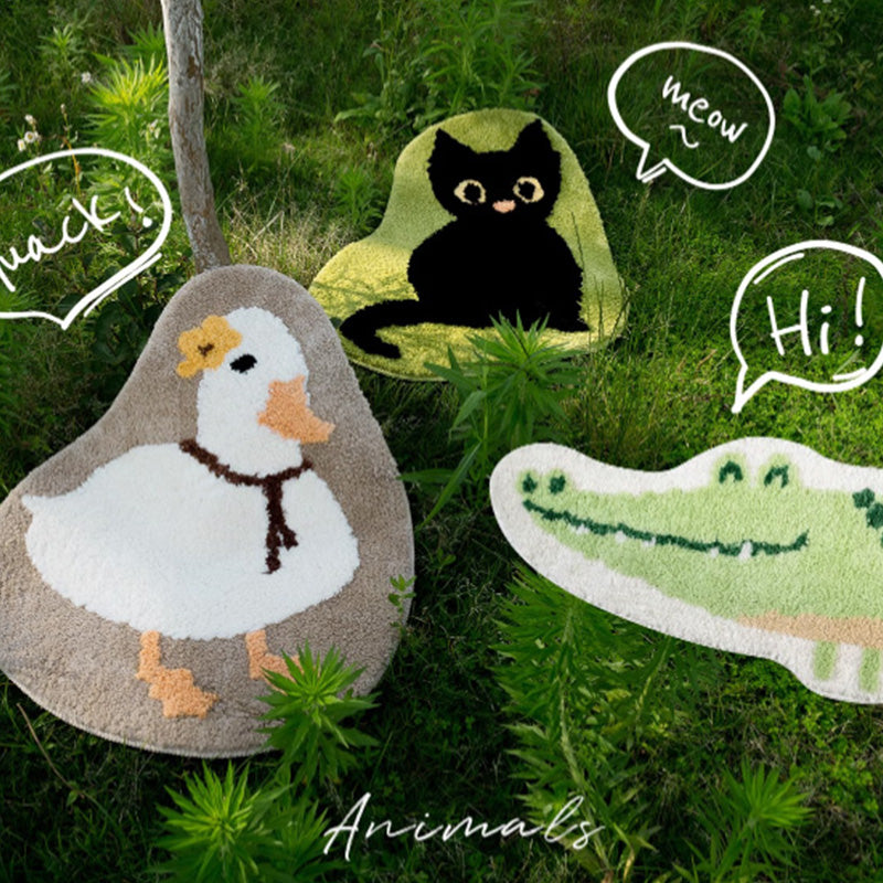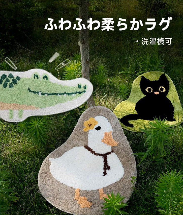Animal ふわふわ柔らかラグは、アヒル、黒猫、ワニなどの可愛らしい動物デザインが特徴です。柔らかい手触りで足元を優しく包み込み、3秒でたっぷり吸水するためバスルームやキッチンでも活躍します。TPE素材の滑り止め加工で安全に使用でき、洗濯機で洗えるのでお手入れも簡単です。OEKO-TEX認証を受けた環境に優しい素材を使用し、子供部屋やリビングにぴったりです。