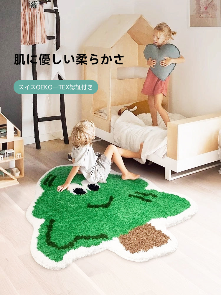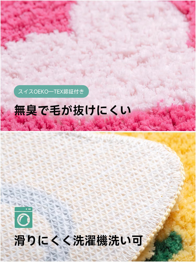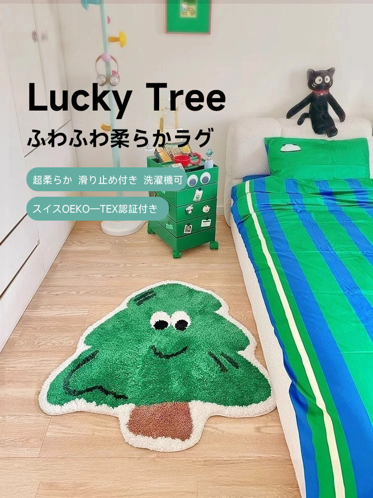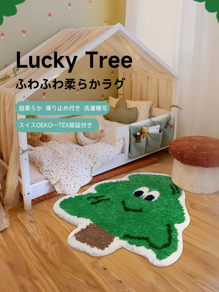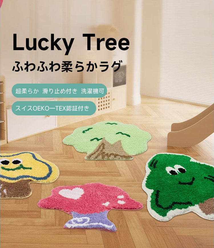 Lucky Tree ふわふわ柔らかラグは、カラフルで楽しい木のデザインが特徴のラグです。ポリエステル繊維で作られたこのラグは、肌触りが非常に柔らかく、快適です。スイスOEKO-TEX認証を取得しており、安全で環境に優しい素材を使用しています。滑り止め加工が施され、厚さ約20mmのクッション性で足元を優しく包み込みます。洗濯機で洗えるため、メンテナンスも簡単。吸水性に優れ、3秒でたっぷり吸水し、通気性と清潔感を保ちます。子供部屋やリビングルーム、ベッドルームなど、さまざまな場所で使える多機能なアイテムです。