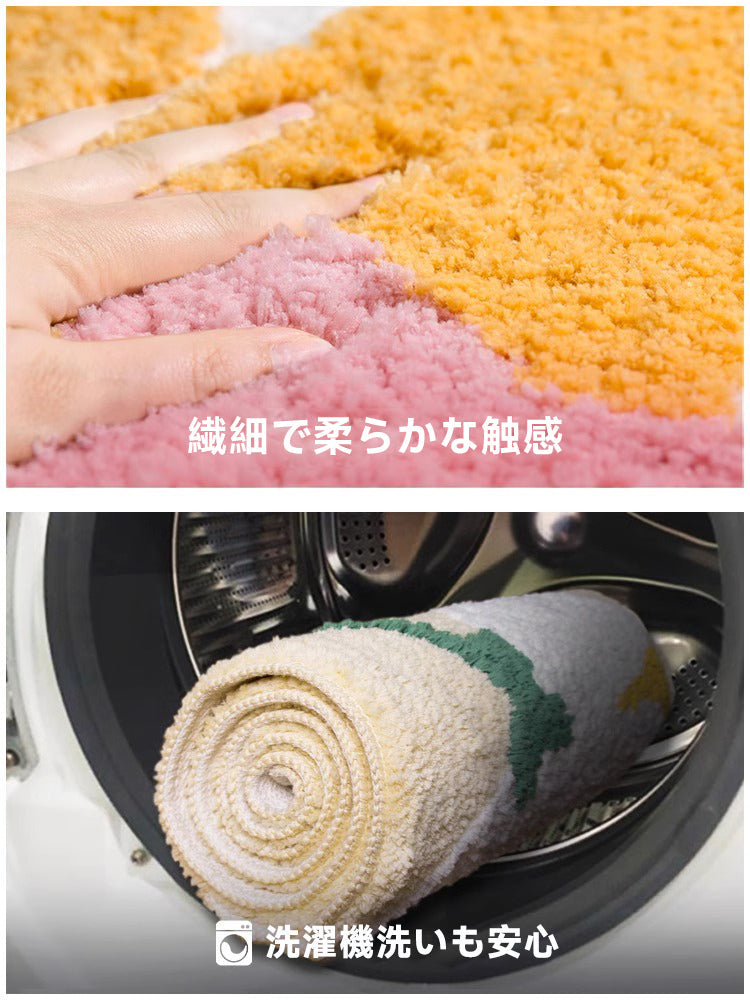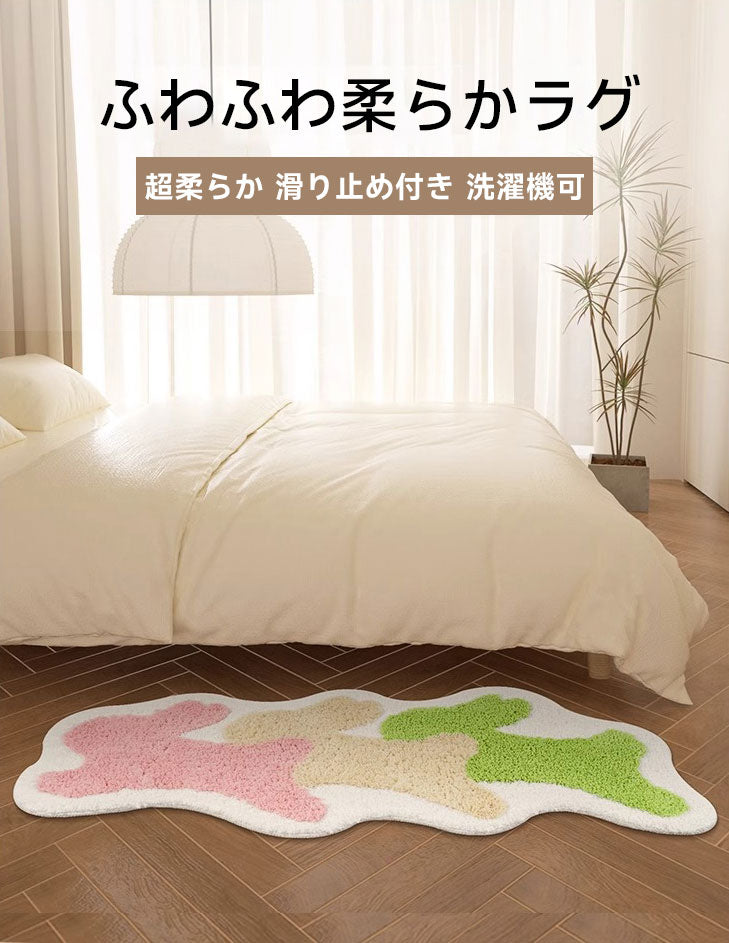 Rabbit ふわふわ柔らかラグは、快適さと機能性を兼ね備えた理想的なラグです。100%ポリエステルの超柔らか素材で、肌触りは赤ちゃんの肌のように優しいです。TPE熱可塑性防滑素材で滑り止め加工が施されており、安全性も抜群。洗濯機で簡単にお手入れでき、優れた吸水性でバスルームやキッチンでも活躍します。カラフルなデザインでどんなインテリアにもマッチ。OEKO-TEX®認証を取得し、環境にも優しい選択です。
