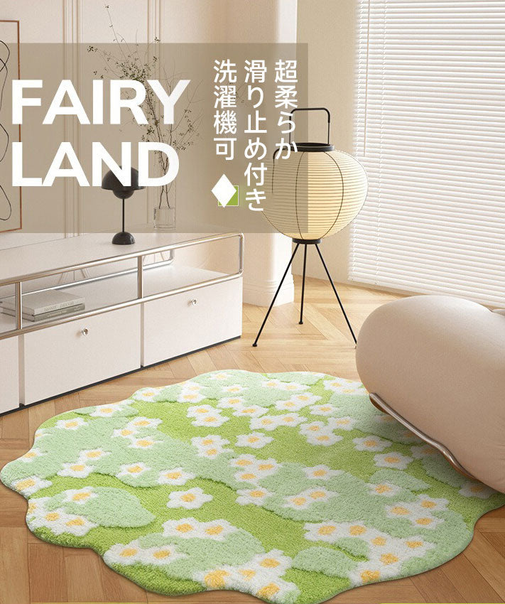 Fairyland ふわふわ柔らかラグは、居心地の良さとデザイン性を兼ね備えたアイテムです。超柔らか素材で肌に優しく、優れた吸水性でバスルームやキッチンでも快適に使用可能。滑り止め加工で安全性も抜群。洗濯機で簡単に洗えるのでお手入れも簡単です。自然な曲線と鮮やかなカラーリングで部屋を明るく彩り、リビングルームやベッドルームに最適です。