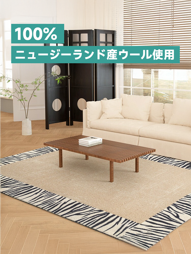 Opera 高級ニュージーランド産ウールラグは、100%ニュージーランド産の高品質ウールを使用し、優れた耐久性と快適な踏み心地を提供します。モダンでスタイリッシュなデザインとゼブラ柄の縁取りが特徴で、どんなインテリアにも調和します。防汚性能と天然の撥水効果で手入れが簡単、通気性に優れた綿の裏地を使用し快適な使用感を実現。環境に優しい製品で、様々なサイズを展開し、部屋の大きさや用途に合わせて選べます。