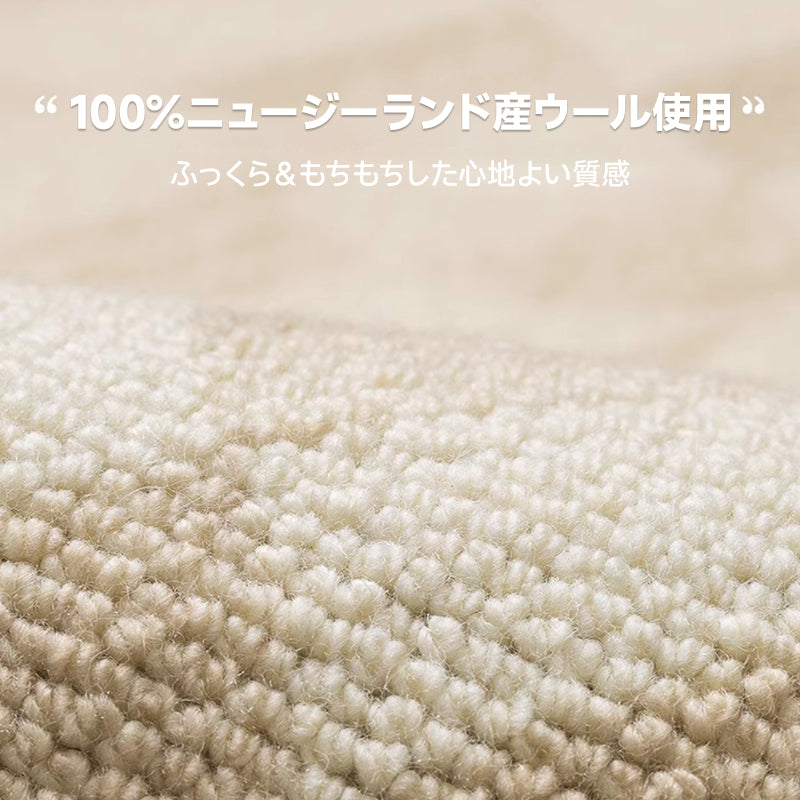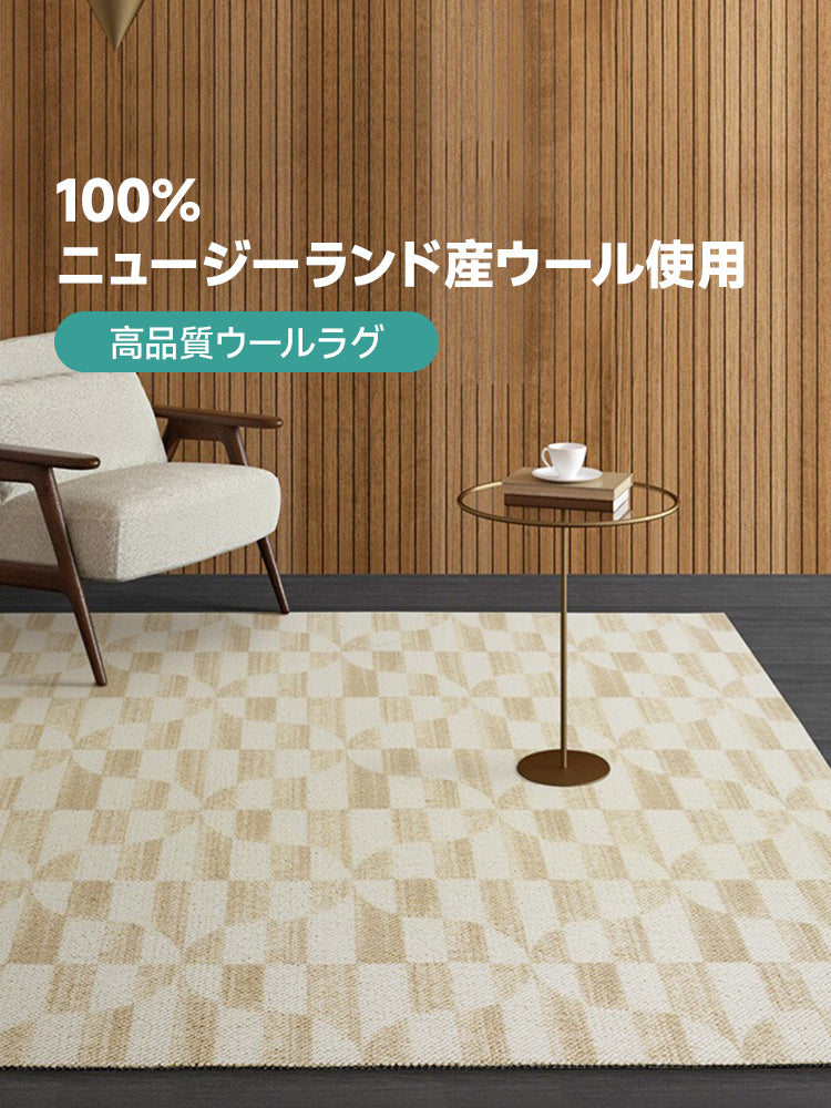Sugar 高級ニュージーランド産ウールラグは、100%ニュージーランド産の高品質ウールを使用し、自然な防汚機能を備えたラグです。モザイクベージュとジオメトリックライトグレーの2色展開で、どんなインテリアにも馴染みます。長い繊維を使用し、抜け毛が少なく、耐久性に優れています。防汚性、防音性、難燃性を備え、環境にも優しい製品です。リビング、ダイニング、寝室などさまざまなスペースに対応可能なサイズバリエーションがあります。