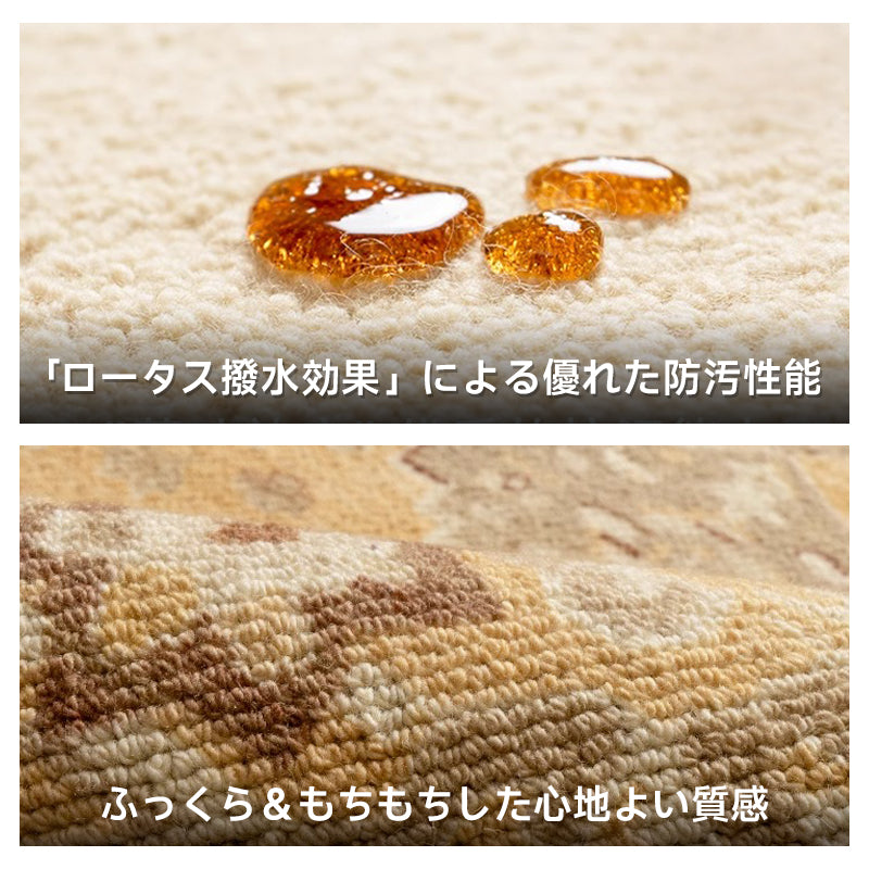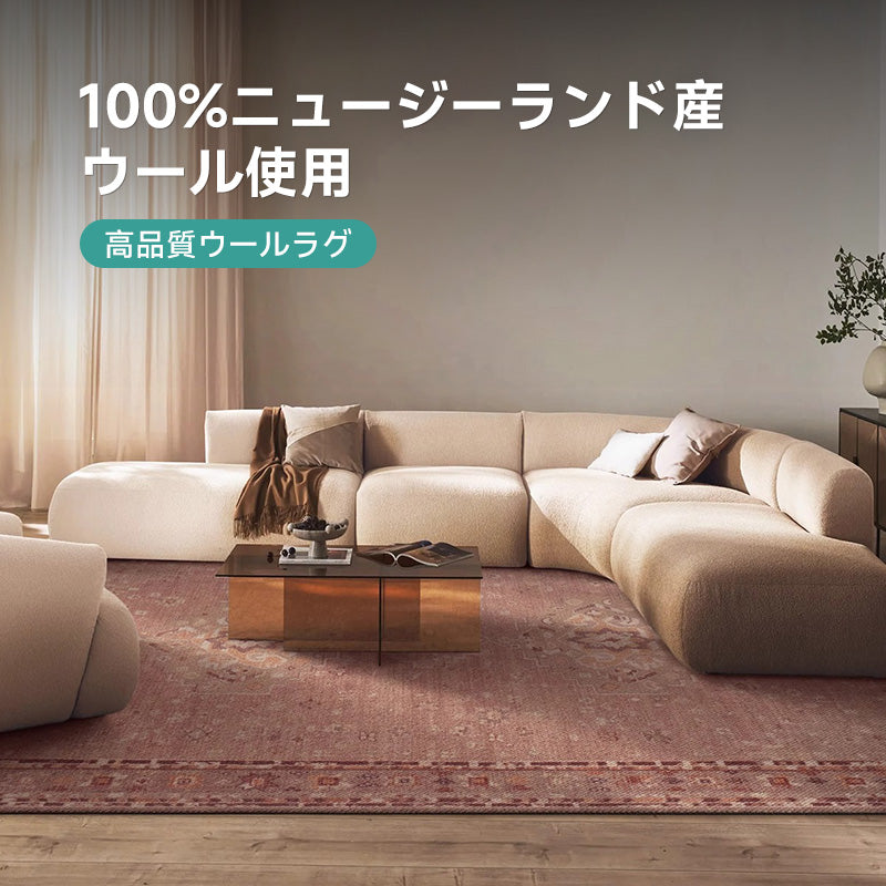 Antique Rose 高級ニュージーランド産ウールラグは、100%ニュージーランド産ウールを使用した高級ラグです。柔らかくふっくらとした質感と滑らかな手触りが特徴で、自然な防汚効果によりお手入れも簡単。美しい模様と色合いがどんなインテリアにもマッチし、リビングや寝室に温もりを加えます。ロータス撥水効果で優れた防汚性能を持ち、難燃性や防音性も兼ね備えています。幅150cmから400cmまでの多様なサイズ展開で、快適な踏み心地を提供します。