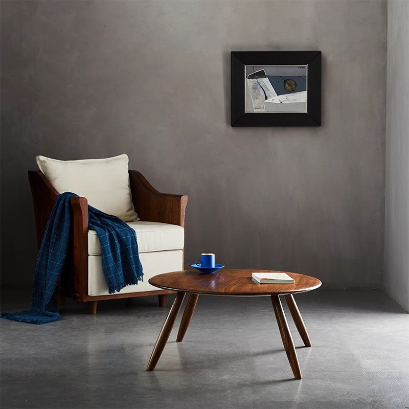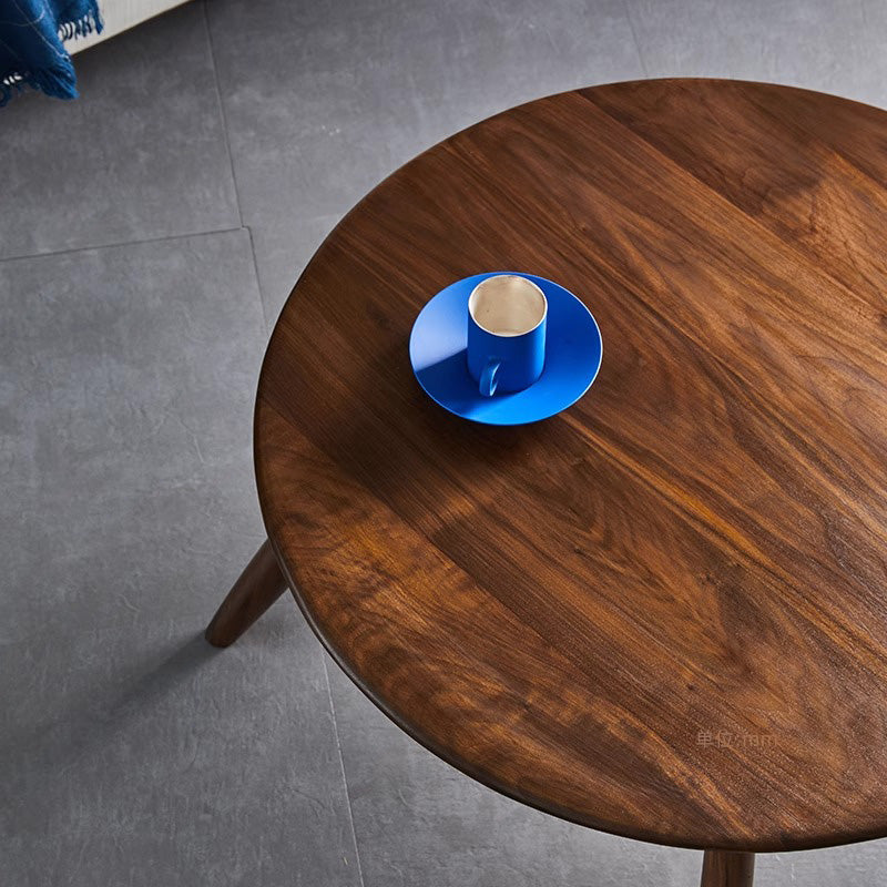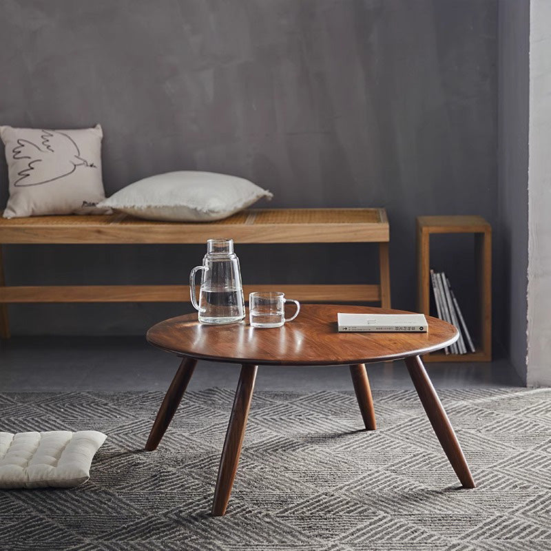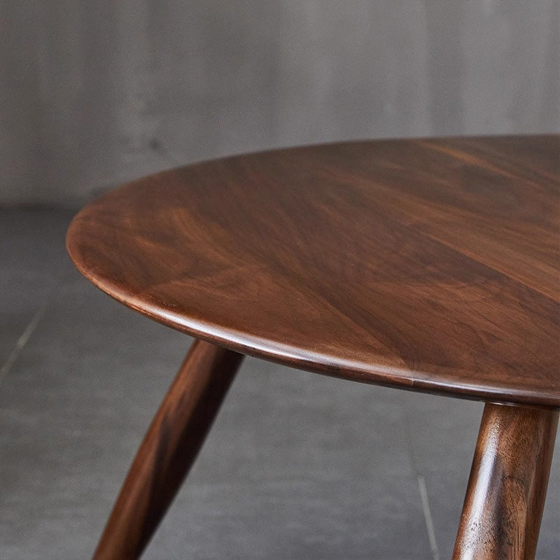 天然木製ラウンドテーブルは、北米産ブラックウォールナットを使用した高品質な製品です。自然な木目と暖かみのある質感が特徴で、どんなインテリアにもマッチします。直径75cm、高さ34cmのコンパクトサイズで、リビングや寝室など様々なスペースに適しています。手作業で磨き上げられた滑らかな天板と、強度と安定性を高めるほぞ継ぎの職人技術を採用。環境に優しい無臭ニスで仕上げられたこのテーブルは、日常生活に自然の温もりをもたらします。