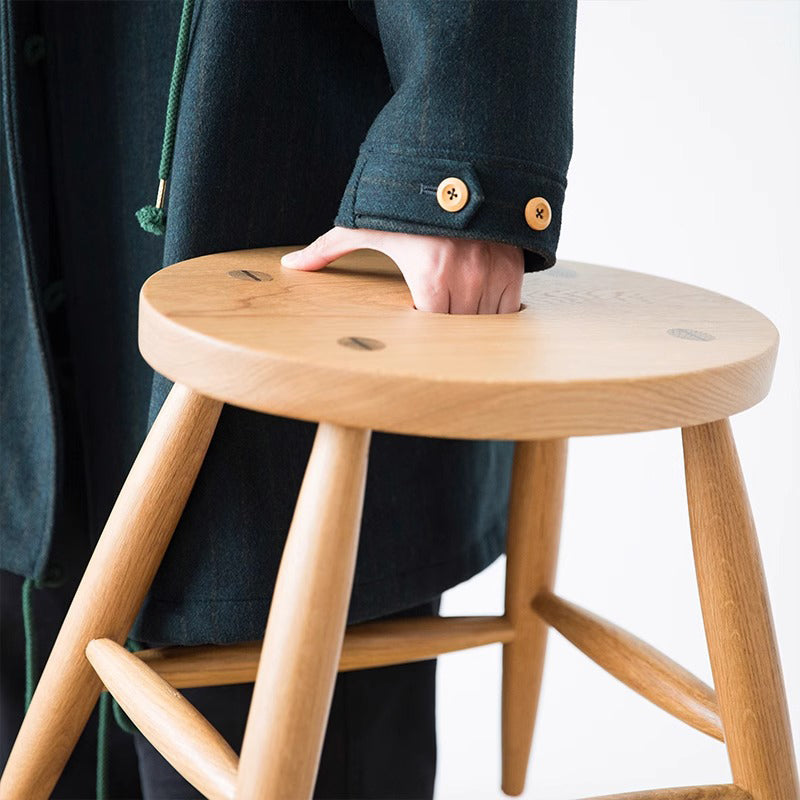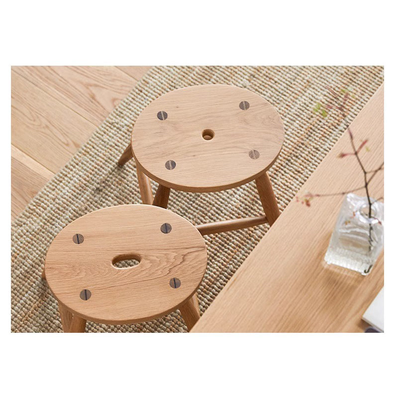 天然木ラウンドスツールは、自然の美しさと機能性を兼ね備えたデザインが特徴です。天然のホワイトオークを使用し、木目の美しさを最大限に活かしています。環境に優しく、耐久性のあるこのスツールは、玄関やダイニング、デスク周りなど様々な場所に自然に馴染み、持ち運びが簡単です。シンプルながらも洗練されたデザインで、どんなインテリアにもマッチし、日常生活の中で多様なシーンで活躍します。