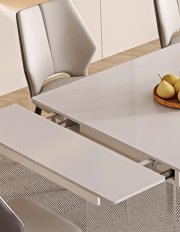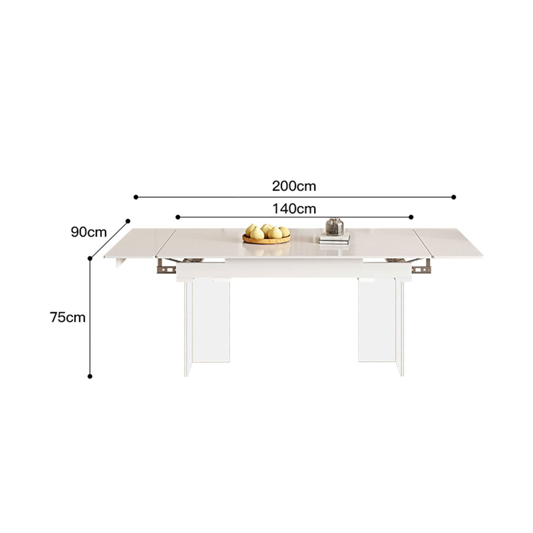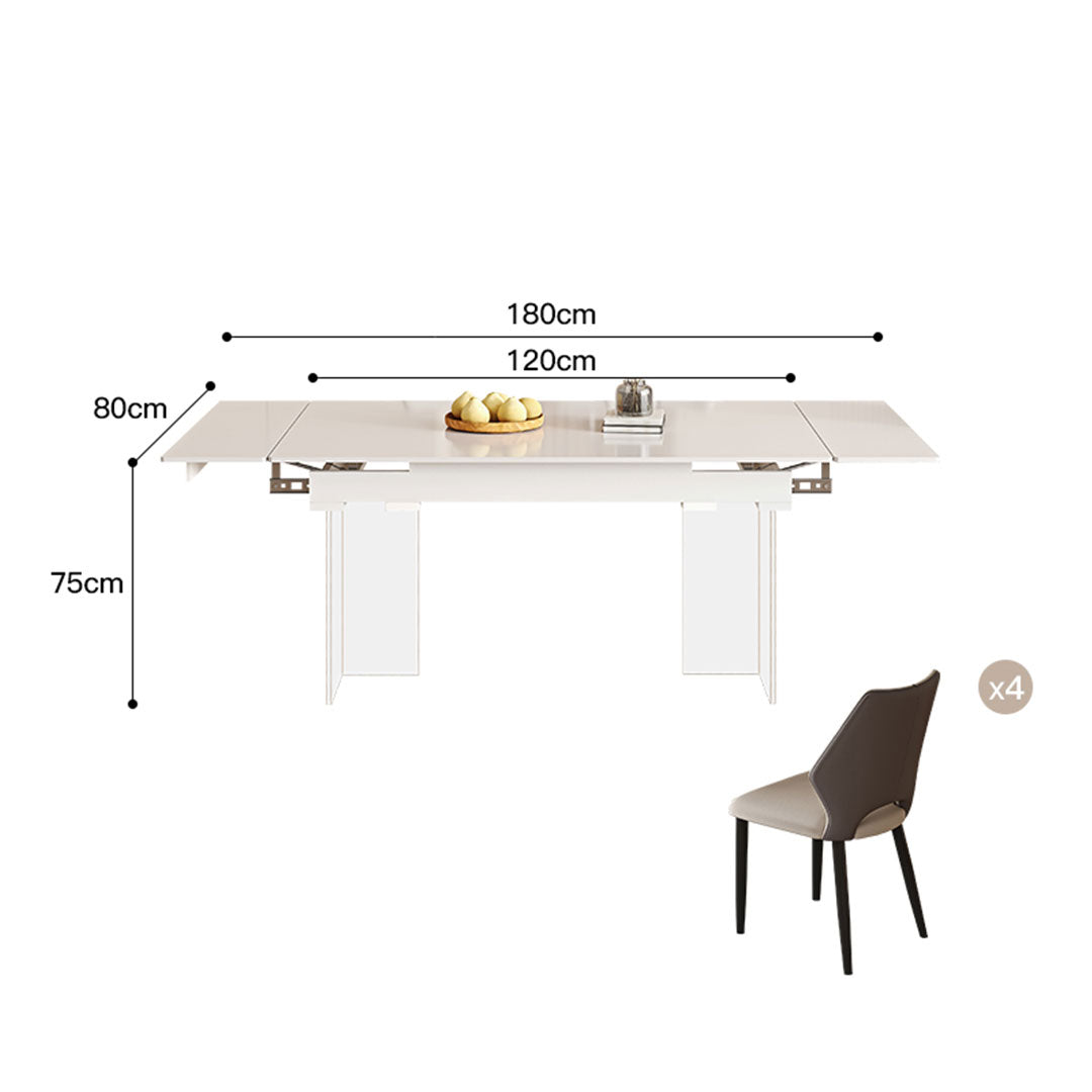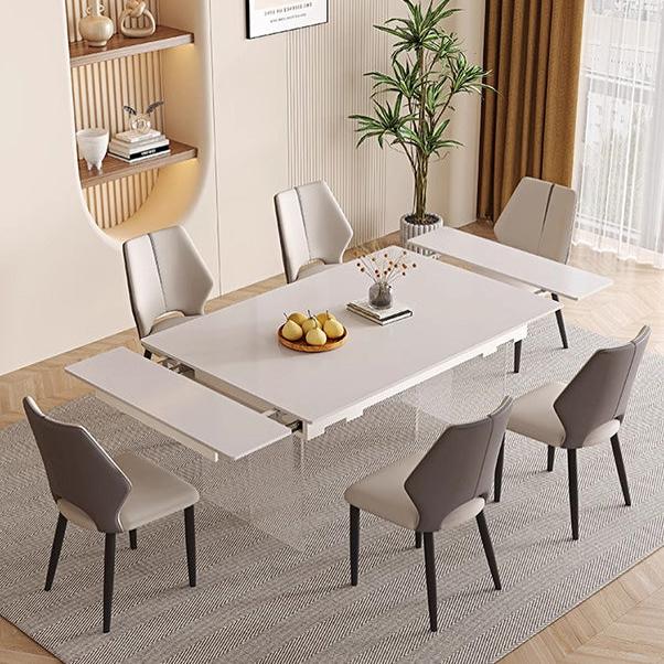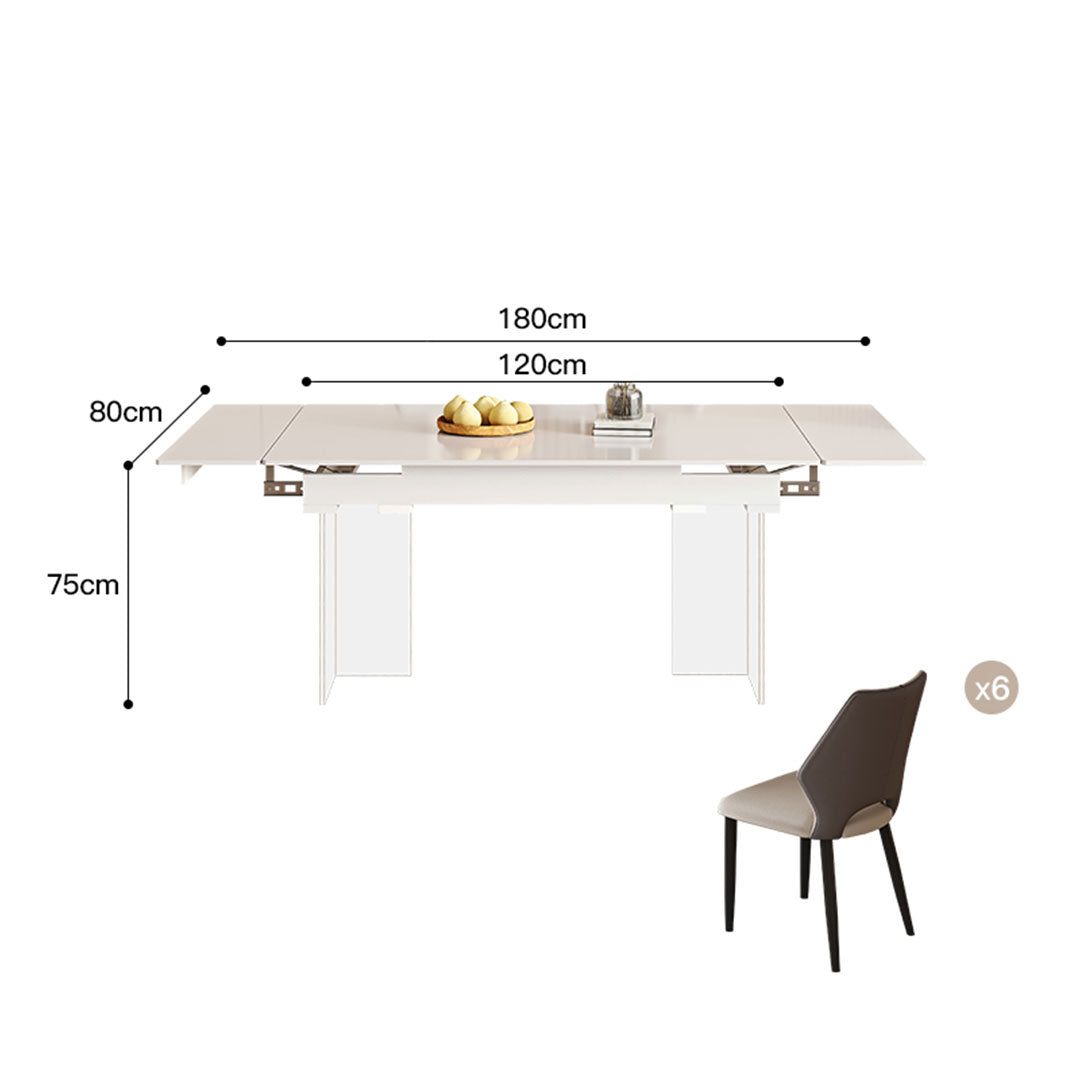 スクエア型伸張式セラミックテーブルセットは、イタリア産の高級セラミックを使用したスタイリッシュで機能的なデザインのテーブルセットです。耐久性と美しさを兼ね備えたこのテーブルは、モース硬度9級の頑丈なセラミックで作られ、耐火性もあり、熱い鍋を直接置いても安心です。透明なアクリル製の脚は軽やかで洗練された印象を与え、部屋全体を明るくします。サイズは100cmから140cmまで3段階に調整可能で、4~8人での使用に最適です。ホームパーティーや家族の集まりにぴったりで、シンプルでモダンな空間を演出します。