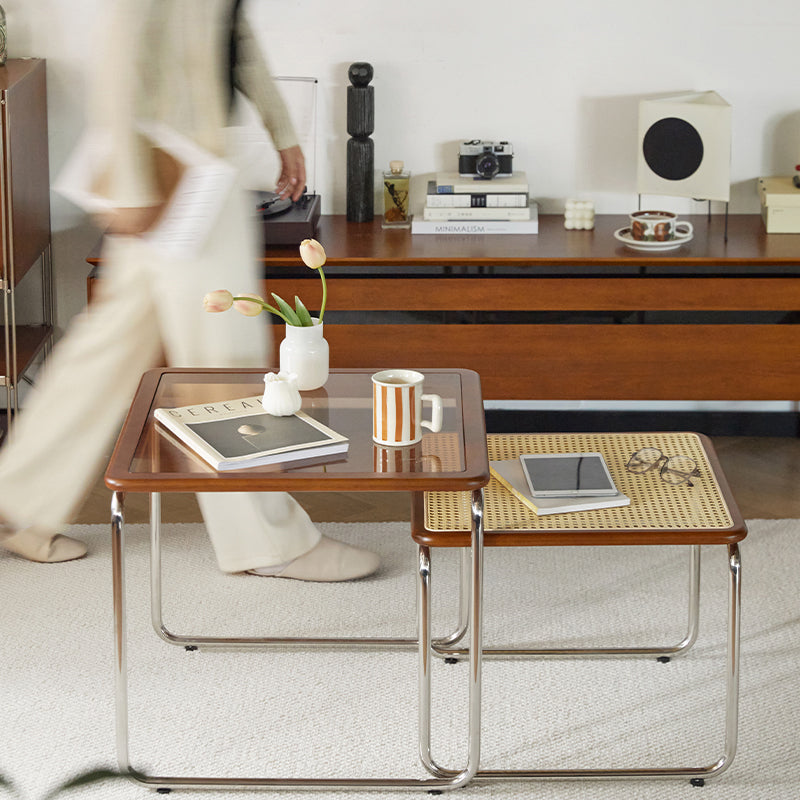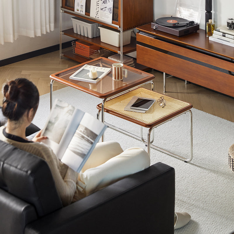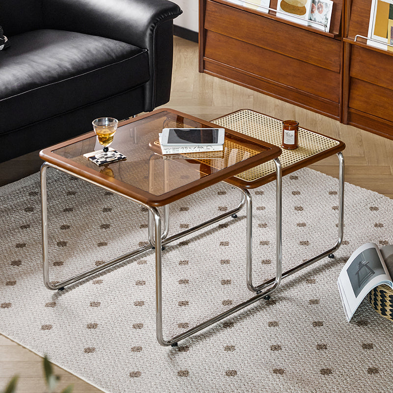 ツゲ材ステンレス製木縁テーブルは、リビングやファミリー向けに最適な高級感あふれるサイドテーブルです。北米産FASグレードのツゲ材を使用し、耐久性が高く温かみのある自然な色合いが特徴です。ステンレスフレームは優れた耐荷重性を持ち、取り外し可能なブロンズガラス天板は空間を広く見せる効果があります。コンパクトで便利なサイズで、様々なシーンで活躍します。ナチュラルな風合いとシンプルなデザインがどんなインテリアにも調和します。