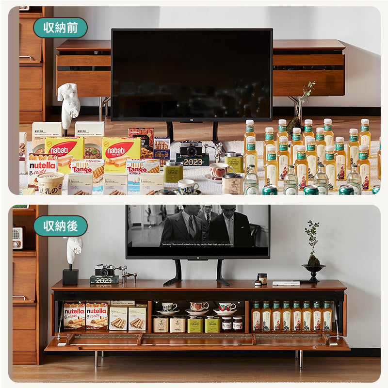 ツゲ材 ワイドフリップ扉テレビボード