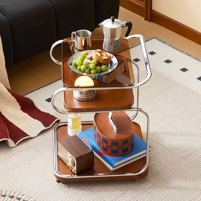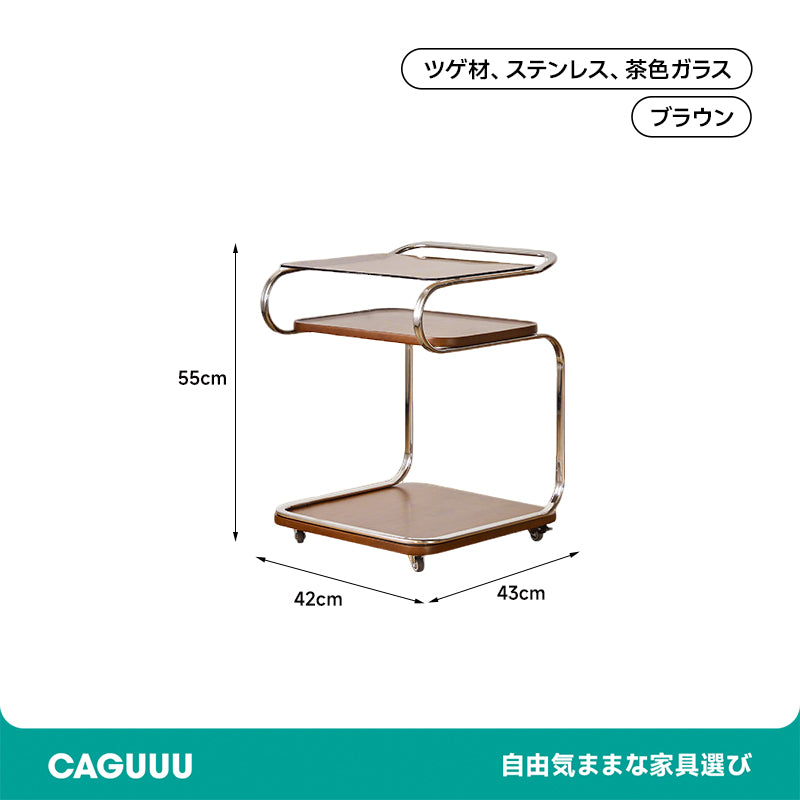 ツゲ材クラシックサイドテーブルは、耐久性と美しい木目が特徴の高級木材を使用した上品なデザインが魅力です。ステンレスフレームで支えられた頑丈な構造と、厚さ5mmの強化ガラス天板により、優れた耐久性と簡単なお手入れを実現。ナチュラル風のブラウンとブラックの2色展開で、どんなインテリアにも調和します。3段のオープンシェルフが収納力を高め、キャスター付きで移動も簡単。コンパクトなサイズで限られたスペースでも活用可能。ファミリーやカップル向けに最適で、リビングやベッドサイドで日常生活をより快適にします。