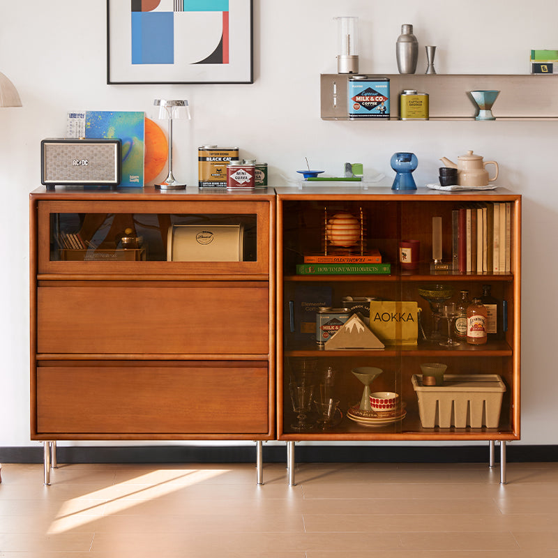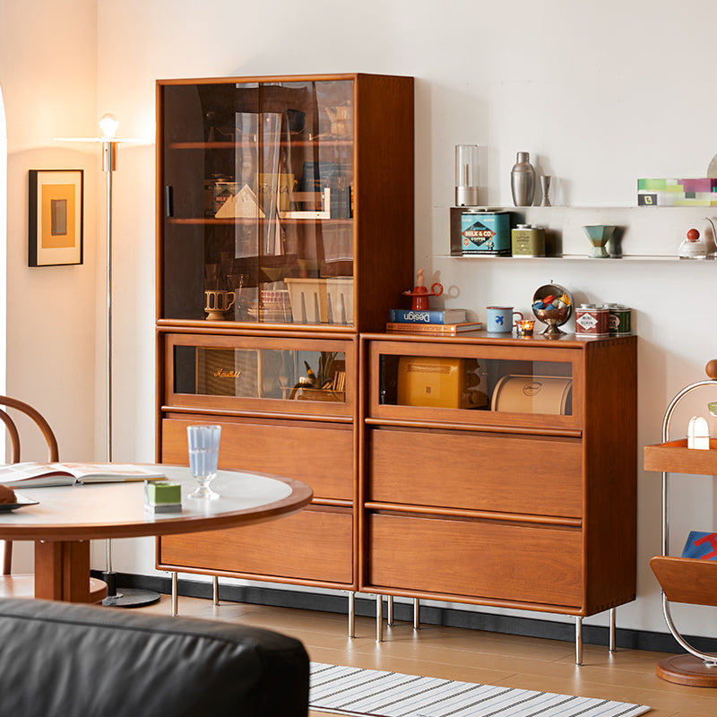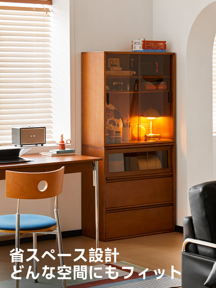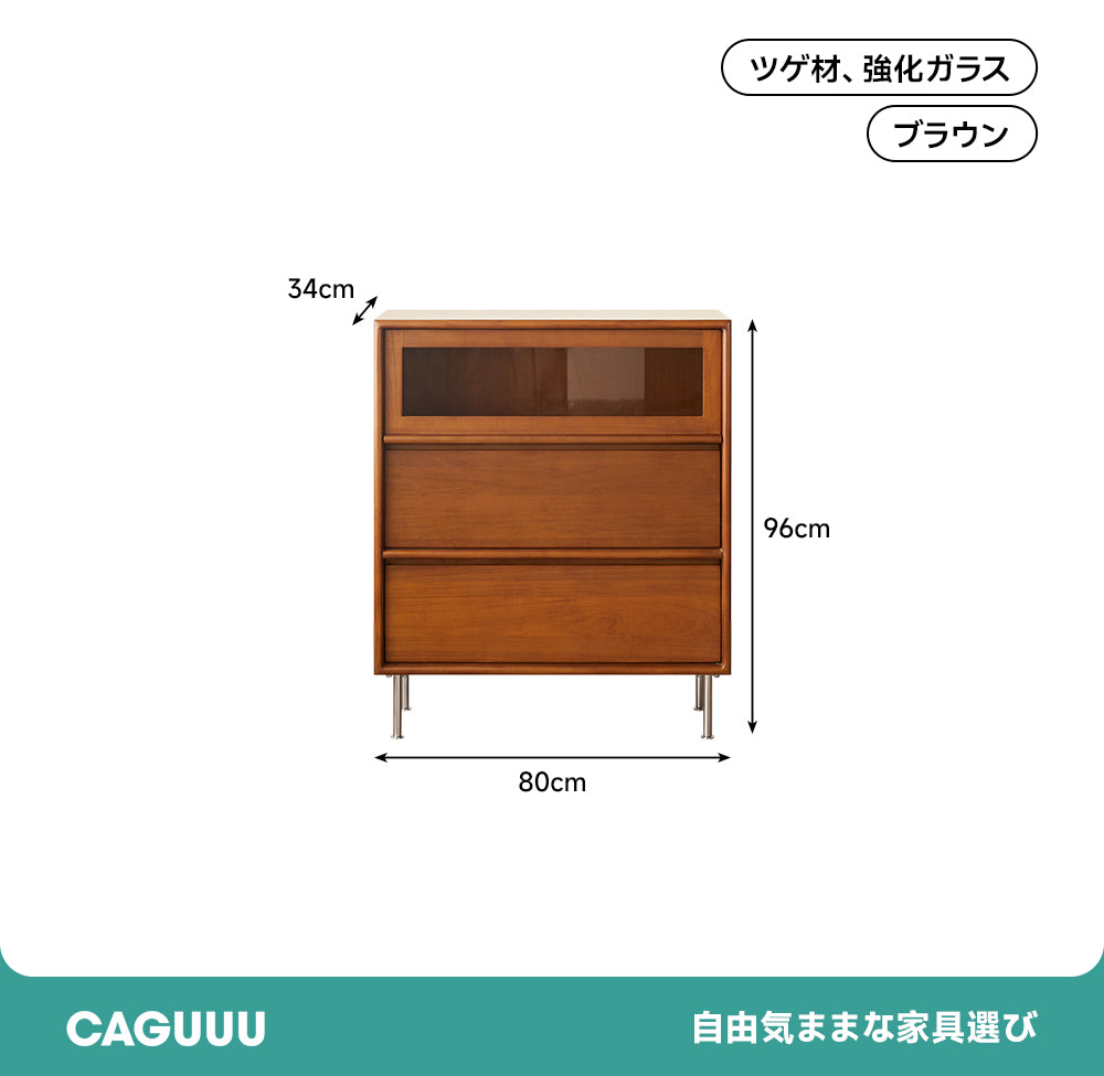 ツゲ材を使用したコンパクト収納キャビネットは、シンプルでありながら高級感のあるデザインが特徴です。北米産FASグレードのツゲ材を使用し、優れた耐久性と自然な美しい色合いが魅力です。幅80cm、奥行34cm、高さ96cmのコンパクトサイズで、リビングやダイニング、書斎など様々な場所にフィットします。大容量の引き出しと調整可能な棚板があり、収納力も抜群です。組立も簡単で、転倒防止装置が付属しているため安全性も確保されています。ファミリーやカップルに最適な収納家具です。