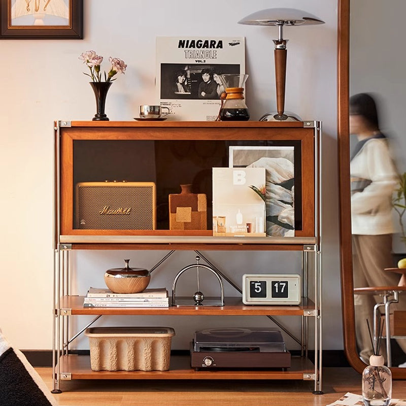 ツゲ材ディスプレイキャビネットは、北米産の高品質FASグレードのツゲ材を使用し、耐久性と自然な色合いが魅力です。ブラウンの強化ガラスがヴィンテージ感を演出し、リビングやファミリー向けの空間にぴったりです。3段の収納スペースで、ガラス扉の収納エリアとオープン式収納を両立し、ディスプレイと収納を同時に実現します。選べる上開きタイプとスライドタイプで、スペースを有効活用。組み立ても簡単で、どんなインテリアにも馴染むシンプルなデザインです。