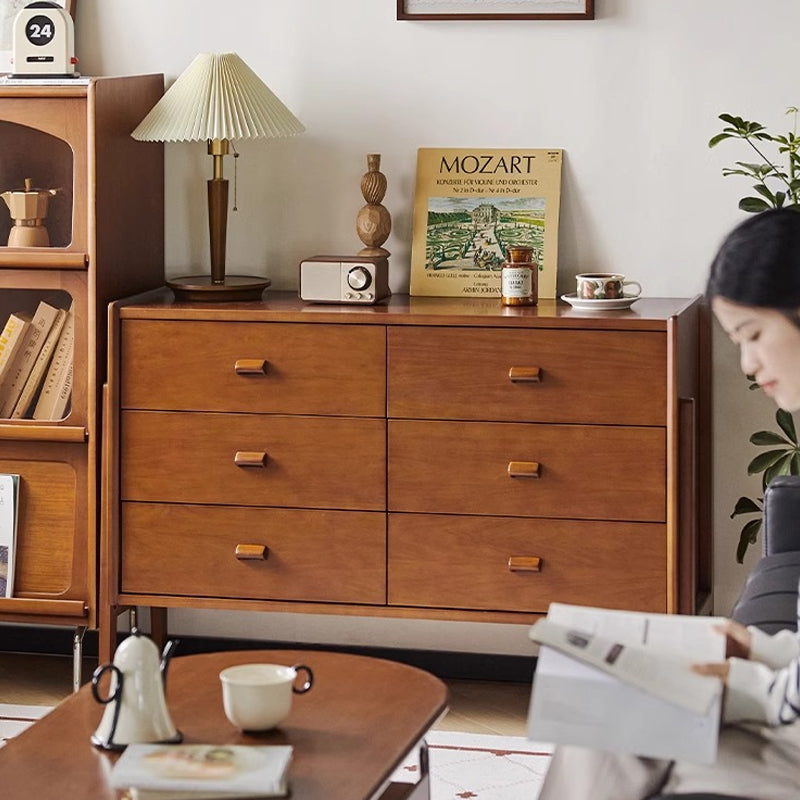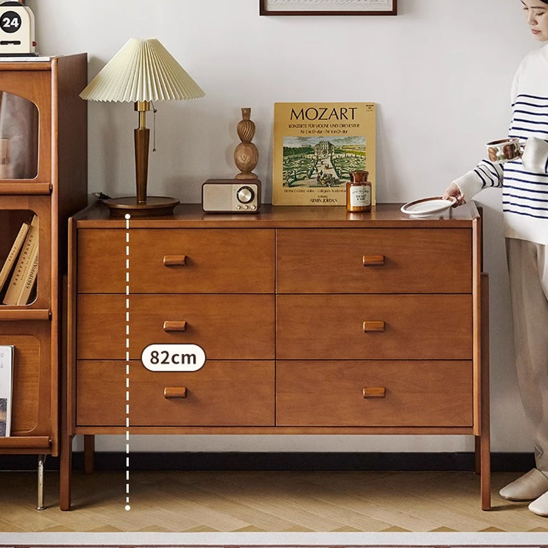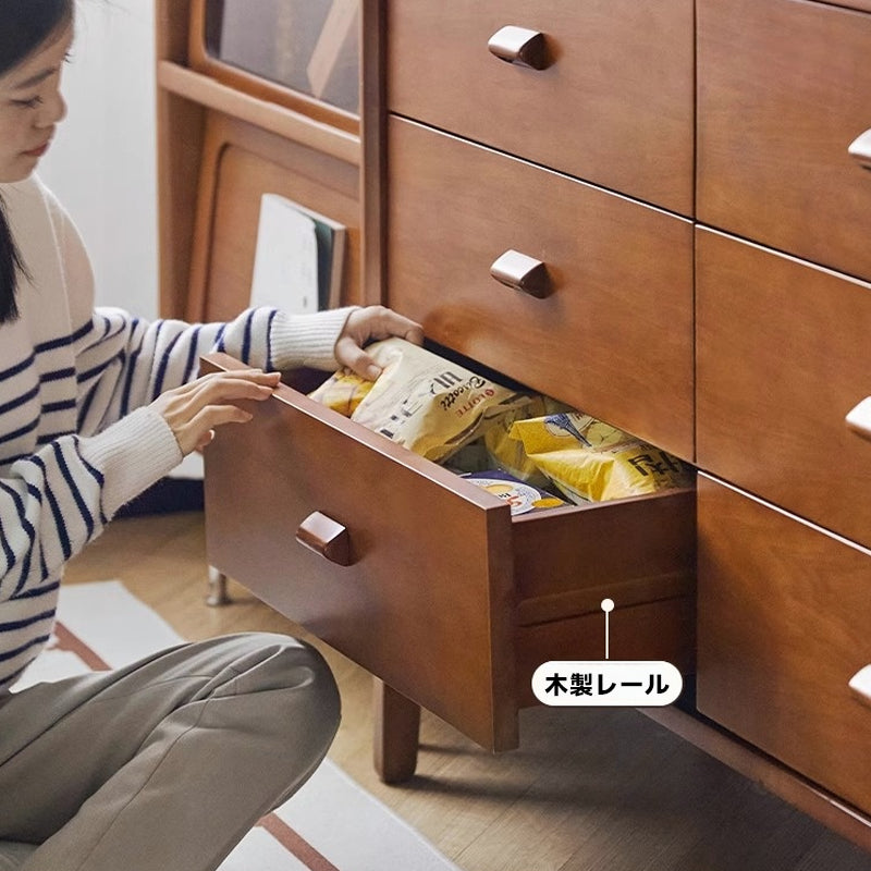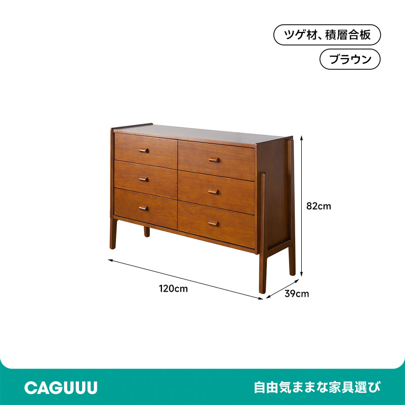 ツゲ材ヴィンテージウッドチェストは、リビングルームに温かみと高級感をもたらす収納家具です。ナチュラルなブラウンの色合いがどんなインテリアにも自然に溶け込みます。高級木材のツゲ材を使用し、耐久性と耐荷重性に優れています。6つの引き出しで大容量収納が可能。安全設計で転倒防止部品付き。洗練されたデザインとレトロな木製取っ手が特徴です。幅120cm、奥行39cm、高さ82cmのサイズで、天板はディスプレイとしても活用できます。背面には通気孔があり、カビの発生を抑えます。ファミリーやカップルに最適なこのチェストで、リビングルームをより快適でスタイリッシュに。