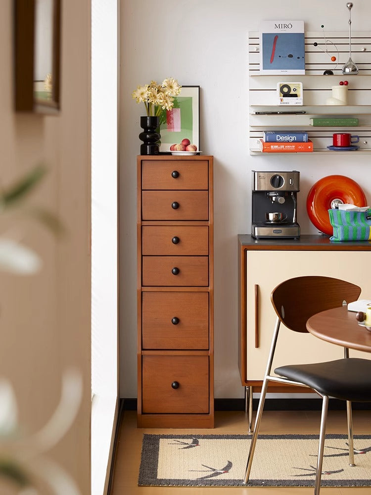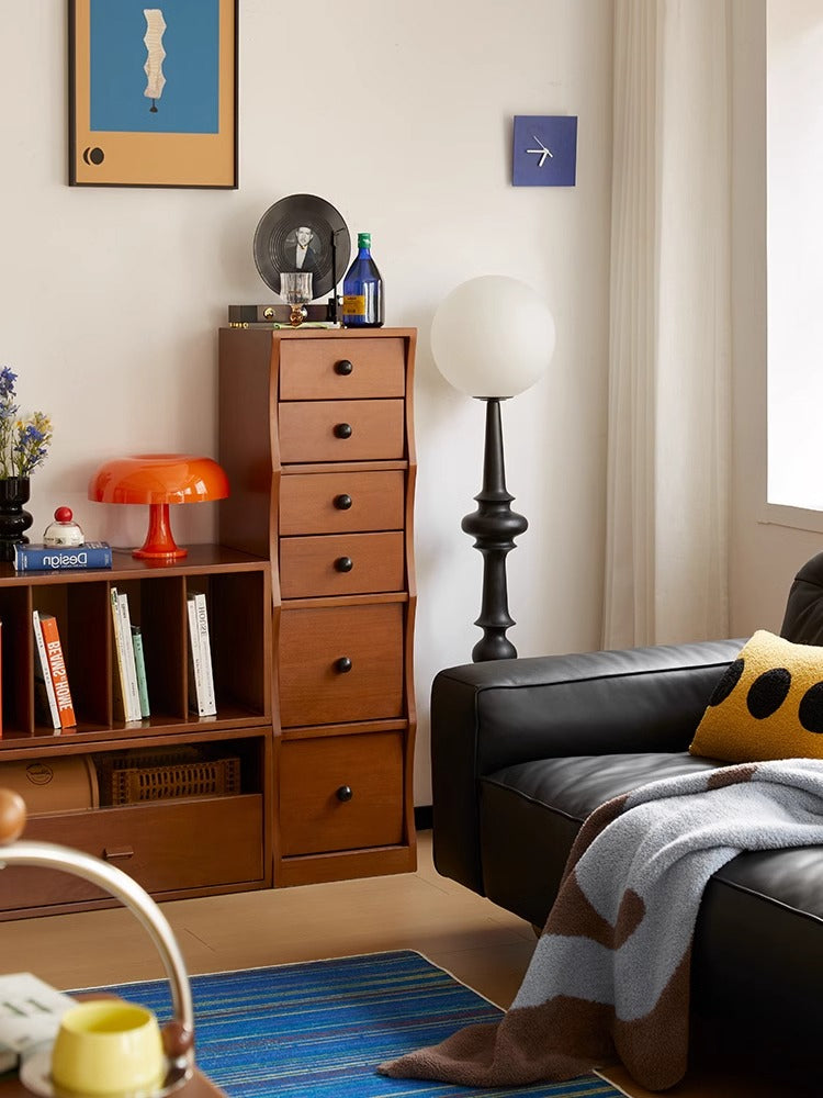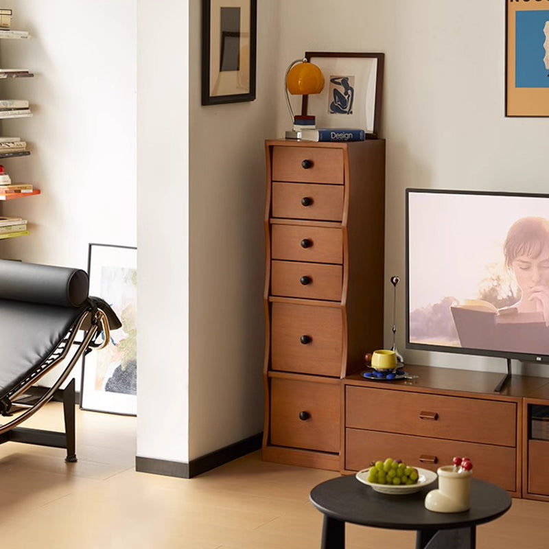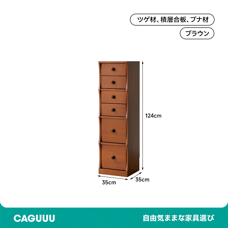 ツゲ材 ナチュラルウッドチェストは、高級感あふれる収納家具で、リビングや寝室、書斎などどんな空間にも調和するデザインが特徴です。高級ツゲ材を使用し、ヴィンテージ風の雰囲気を演出します。コンパクトサイズで限られたスペースにも設置可能、5つの引き出しで収納力抜群。安全設計で家族の安全を守り、デザイン性に優れたウェーブデザインが魅力。多用途のトップスペースはディスプレイ台としても活用可能です。
