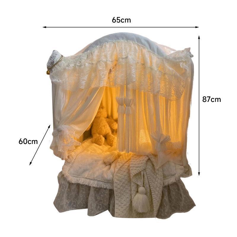 天蓋付きレトロ風ペットベッドは、ビンテージ加工の天然木を使用したロマンチックなデザインで、ペットに快適で安心できる空間を提供します。精緻な彫刻と柔らかなカーテンが上品で豪華な印象を与え、ペットをお姫様や王子様に変身させます。インテリアとしても美しく、特別な贈り物として最適です。65cm x 87cm x 60cmのサイズで、ペットがゆったりとくつろげます。