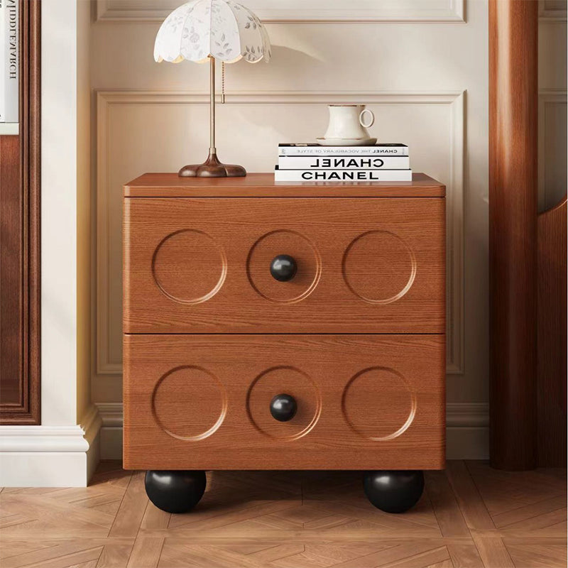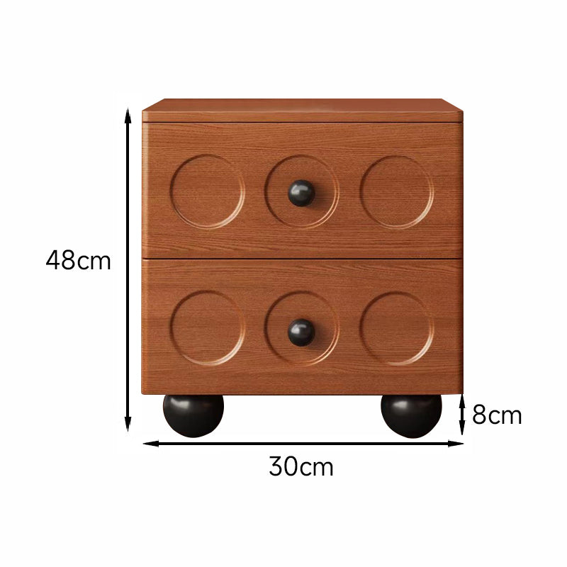 木製デザインナイトテーブルは、シンプルでスタイリッシュなデザインが特徴。クラシックな2つの引き出しにはレトロな丸穴デザインとセラミックハンドルが施され、部屋の質感を高めます。ブラック、ホワイト、ブラウンの3色展開で、どのインテリアにもマッチ。高品質なラバーウッドを使用し、耐久性と環境への優しさを兼ね備えています。丸みを帯びたエッジ加工で安全性を考慮し、静音レールでスムーズな開閉が可能。球形の天然木の脚部が重厚感を演出し、安定感があります。ベッドルームをより魅力的に演出するこのナイトテーブルは、実用性とデザイン性を兼ね備えた一品です。